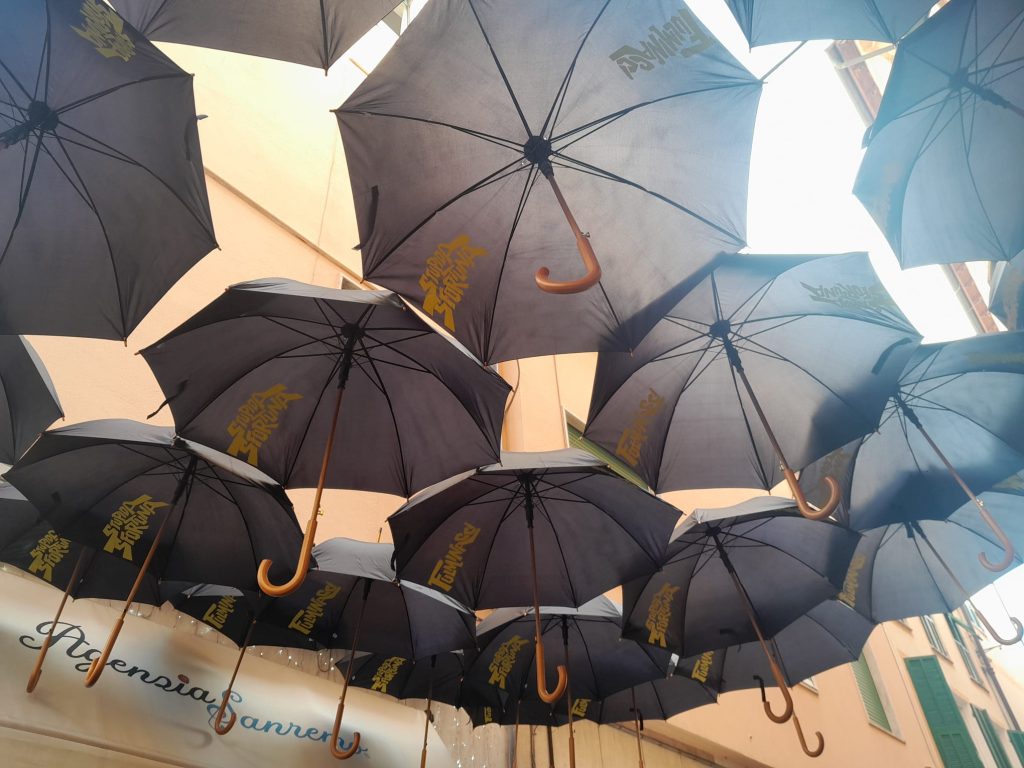 Un’altra attrazione della città sono i villaggi: radio, brand, chi ospita artisti, chi offre gadget. Radio Kiss Kiss ha praticamente monopolizzato il molo, e ritorna la ruota panoramica a Pian di Nave, questa volta con un altro brand rispetto agli anni scorsi. Dietro la ruota, piazzata sul mare, troneggia la Costa crociere che guarda alla città come guardava il Forte di Santa Tecla. A bordo, credo di intuire, ci sono altri brand, Pezzali che canta, e qualcuno che si diverte a programmare le scritte luminose. È incredibile come questa nave appaia tra i palazzi, gigantesca, a ingombrare un panorama che so a memoria. Anche questo è marketing, non ci possiamo fare niente, ma intanto ci godiamo il parco giochi.