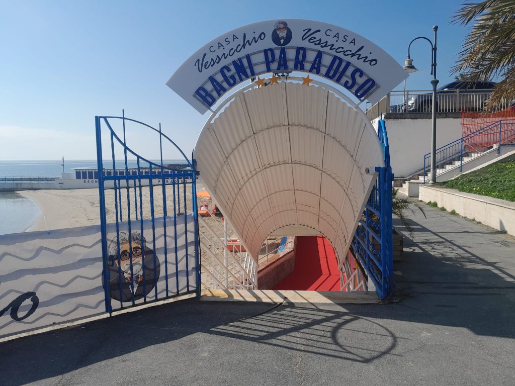 Mi perdo a pensare che sono proprio incastrata tra riflessioni globali che convocano il telegatto di Baudo e la disamina di Mike Bongiorno di Eco, e riflessioni locali che arrivano mio malgrado perché qui ci vivo, e leggo le notizie e scrivo su un giornale di qui. Per questo motivo, infatti, mi avventuro sulla pista ciclabile in cerca dei cartelli che ne annunciano la chiusura nella fascia oraria in cui, in via sperimentale per la prima volta quest’anno, passerà una navetta. Siamo davvero speciali in questo angolo di Liguria: facciamo una ciclabile e poi la chiudiamo perché non siamo riusciti in altri modi a risolvere il problema del traffico folle di queste giornate. Cammina cammina, arrivo pure allo spazio di Casa Vessicchio allestito ai Bagni Paradiso: è un orario spento e non trovo nulla e nessuno, ma è un ideale omaggio a una figura iconica del Festival, che anni fa vidi proprio al volante della sua Y10 mentre guidava sul lungomare di Sanremo.