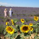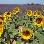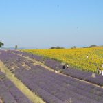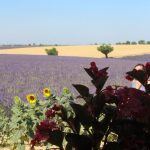 Mentre in Italia si andava definendo una domenica estiva ingombra di umidità e nuvole basse, l’altopiano di Valensole mi ha riservato una giornata dorata, nel senso concreto e metaforico. Non ero mai stata in Provenza, e non credevo possibile che quanto dipinto dai grandi autori francesi esistesse davvero, così, esattamente come lo avevano tradotto loro da sensazione a colore e immagine. Tutto, tra quei campi color lilla intenso e profumato di cose buone, sapeva di estate, di serenità. Cappelli di paglia, abiti bianchi, freschi e svolazzanti, il cammino pacifico di una Citroën 2CV che attraversa il nastro della strada tra girasoli e grano, come in un film. Come mi punzecchiava il ricordo di “Vino, patate e mele rosse” di Joanne Harris, che lessi anni fa e che se da un lato ricorda le atmosfere così francesi del film (e precedente libro) “Chocolat”, dall’altro racconta proprio la Provenza, la sua mite dolcezza fatta di cose semplici, di colori intensi che restano nel cuore.