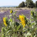 Il giallo intenso dei campi di grano e delle tondissime teste di girasole, l’azzurro terso di un cielo di piena estate, le onde blu violetto delle coltivazioni di lavanda. La Provenza è questi tre colori, colmi di rilassatezza tipica del midi francese e dell’immaginario cromatico di Van Gogh e Cézanne. Sull’altopiano di Valensole è tutto davvero così, come in un quadro: dolcissimi pendii percorsi dai filari di lavanda, che creano curve di un intenso color blu-lilla e profumano l’aria, macchie gialle, capannoni di forme così classiche da sembrare finti, pagliai, casette affastellate con persiane color (!) lavanda, trattori. Manca solo di veder spuntare da dietro una collinetta una Citroën 2CV di un colore sgargiante, un dettaglio che si aggiunge in modo così naturale all’allestimento già perfetto del paesaggio. E chissà perché, nel mio immaginario, è proprio una Citroën 2CV, la “500” dei francesi, l’auto economica e versatile che sembra essere stata creata apposta per sposarsi con le forme dolci, la spensieratezza e la felicità che emana il colpo d’occhio unico di una giornata di giugno.