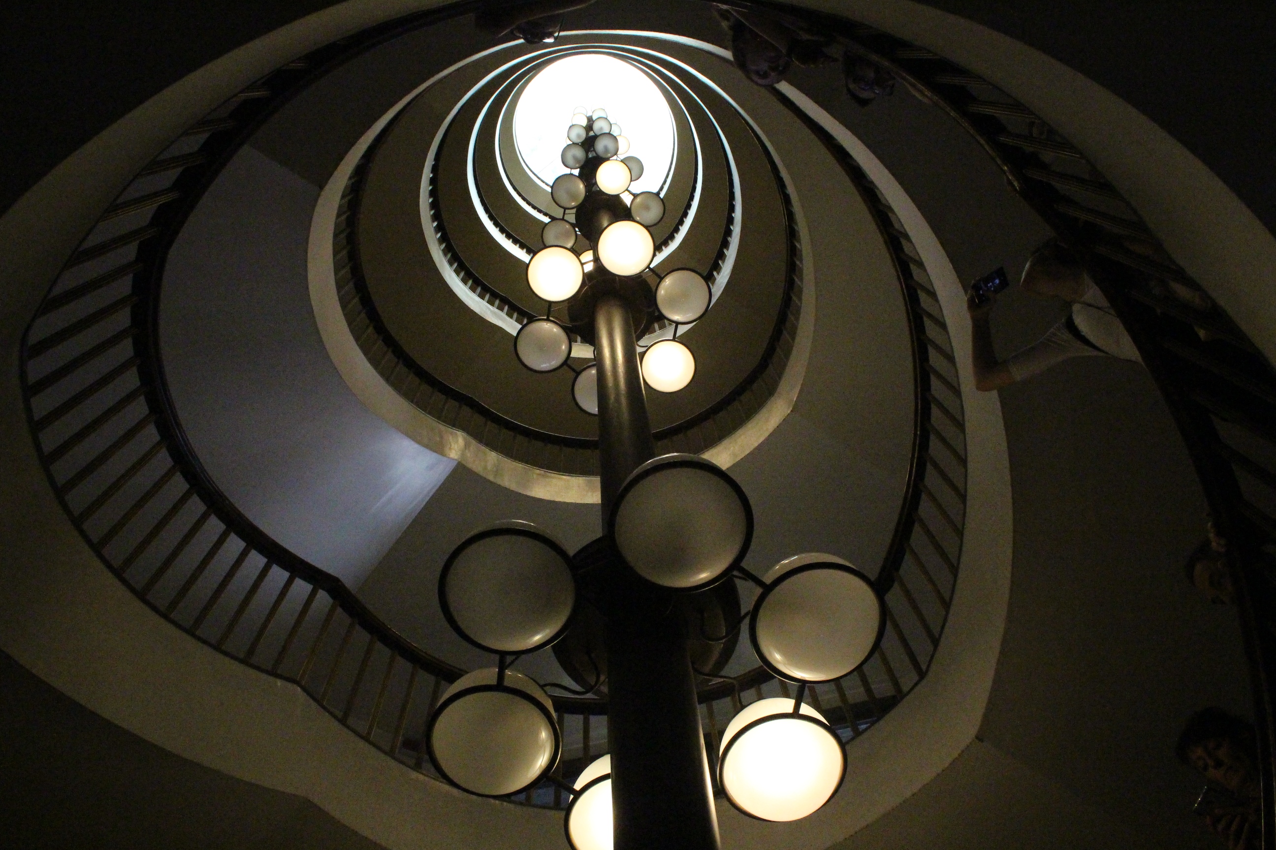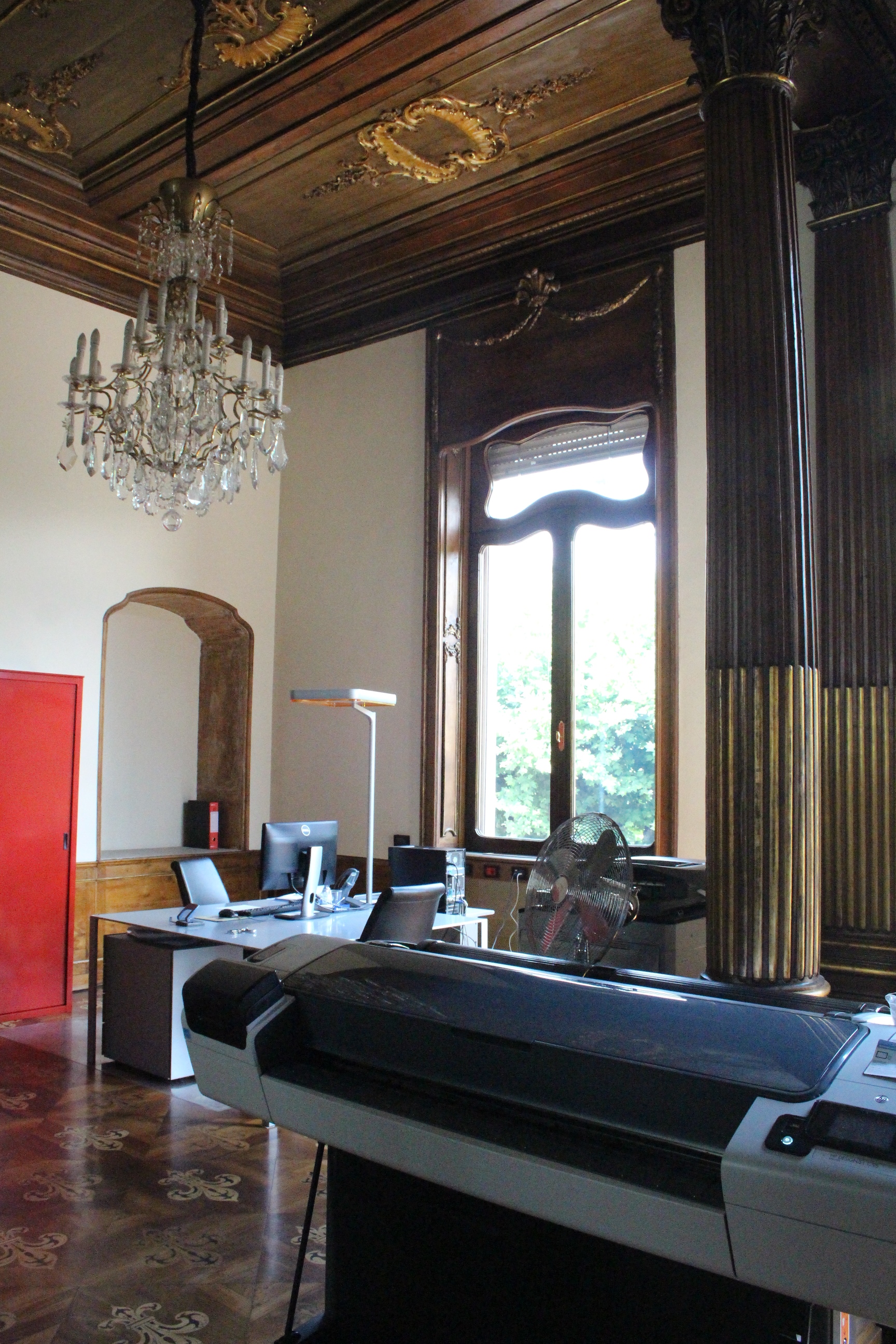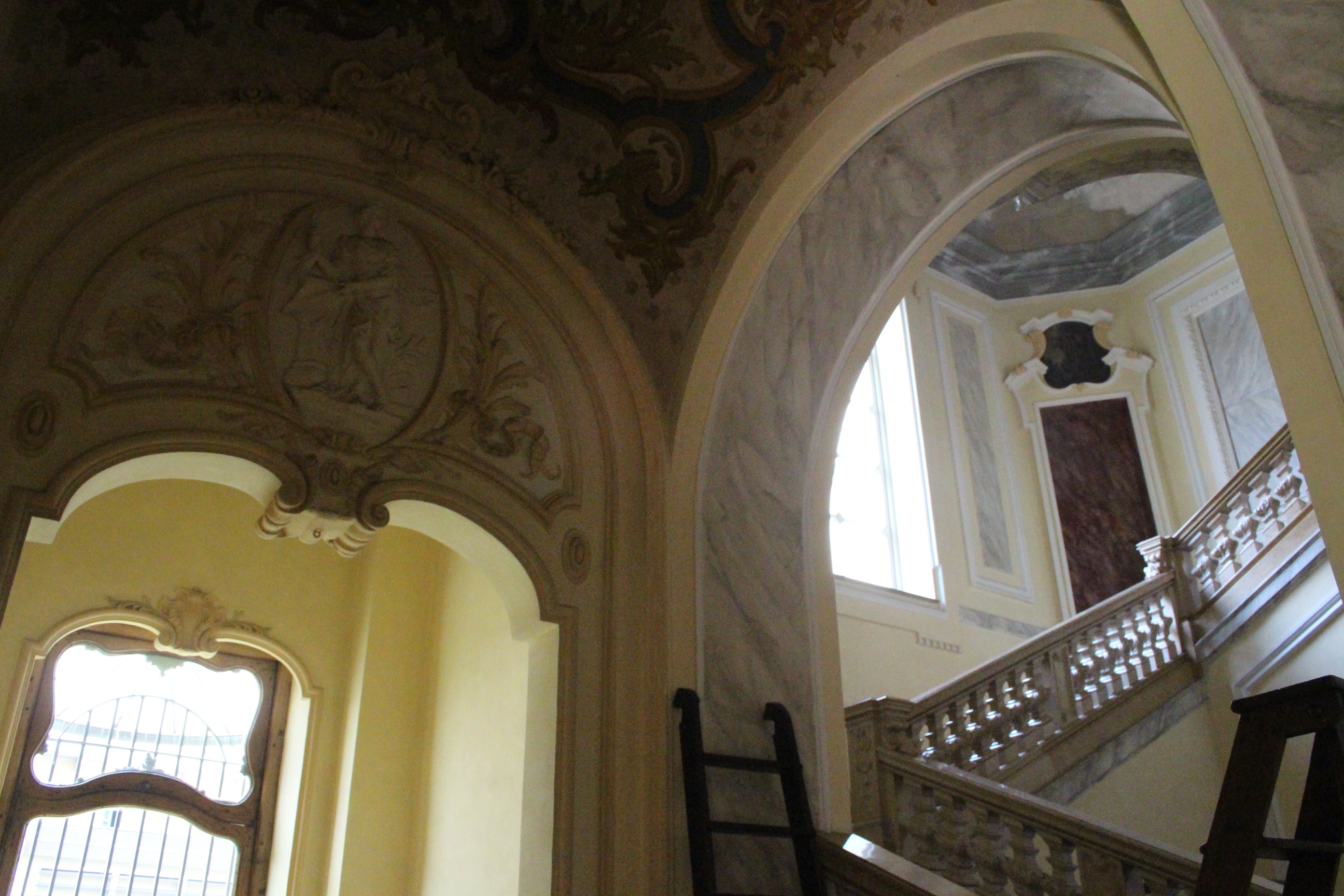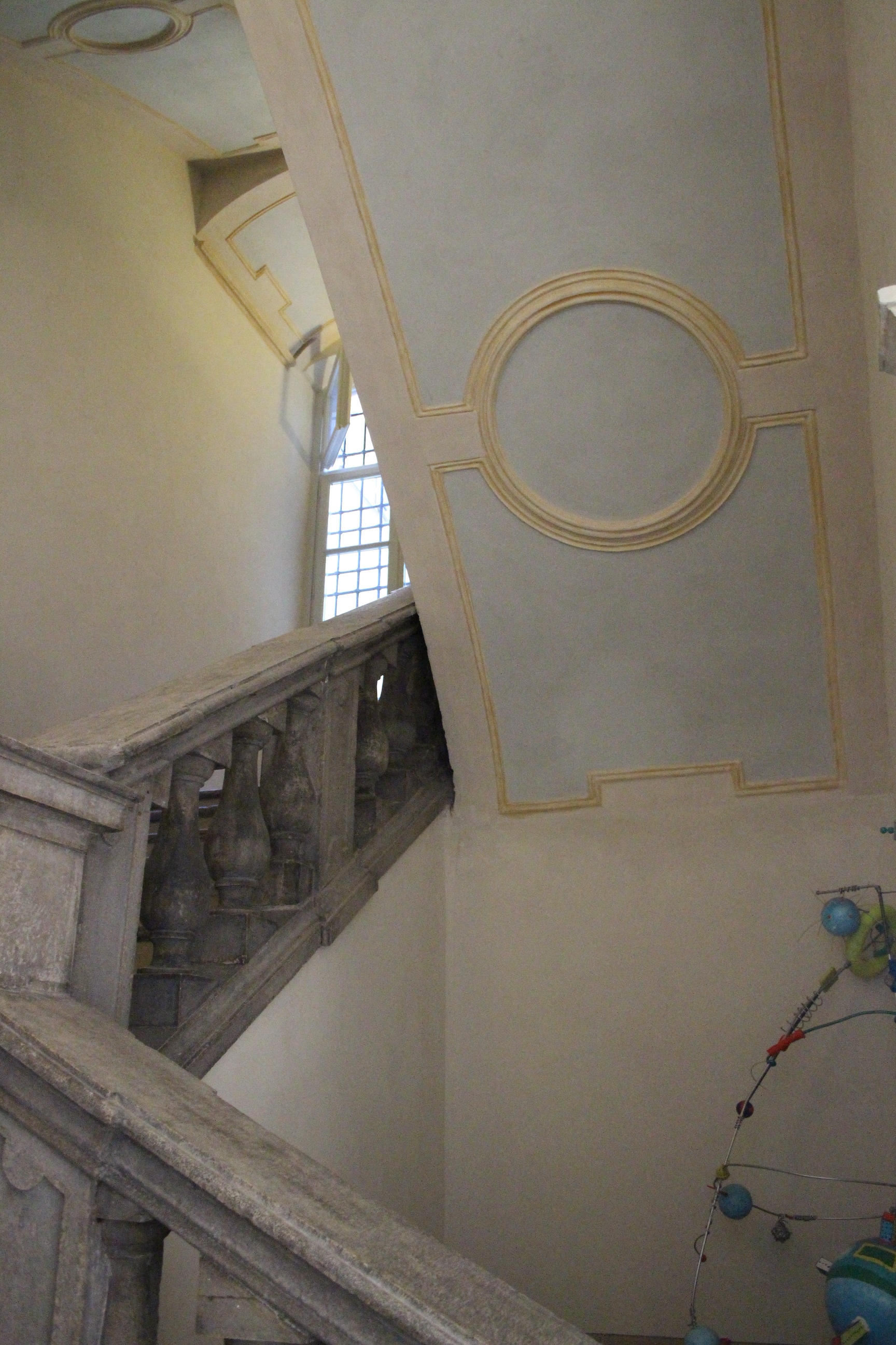 Il mio giro non è finito qui, ho visto infatti ancora Palazzo Bricherasio, ora sede di una banca. Sontuosissimo e un po’ straniante tra stucchi e decori barocchi, lampadari raffinatissimi in vetro di Murano e moderne strutture da ufficio. Ricordo di averci visto anni fa una mostra sul papiro di Artemidoro, ma evidentemente è passato tempo e ho rimosso i ricordi, o più probabilmente l’allestimento non aveva dato spazio al palazzo ma al contenuto della mostra. Ero già stata anche alla Bottega di Erasmo, in via Gaudenzio Ferrari, in quel particolare palazzo con la facciata geometricamente insolita che ospita la biblioteca del dipartimento di psicologia. Era una bottega di tipografia, e poi una libreria, e qualche segno ancora resta, così come dettagli di costruzioni e infissi che sembrano quelli di uno spot anni ’50.