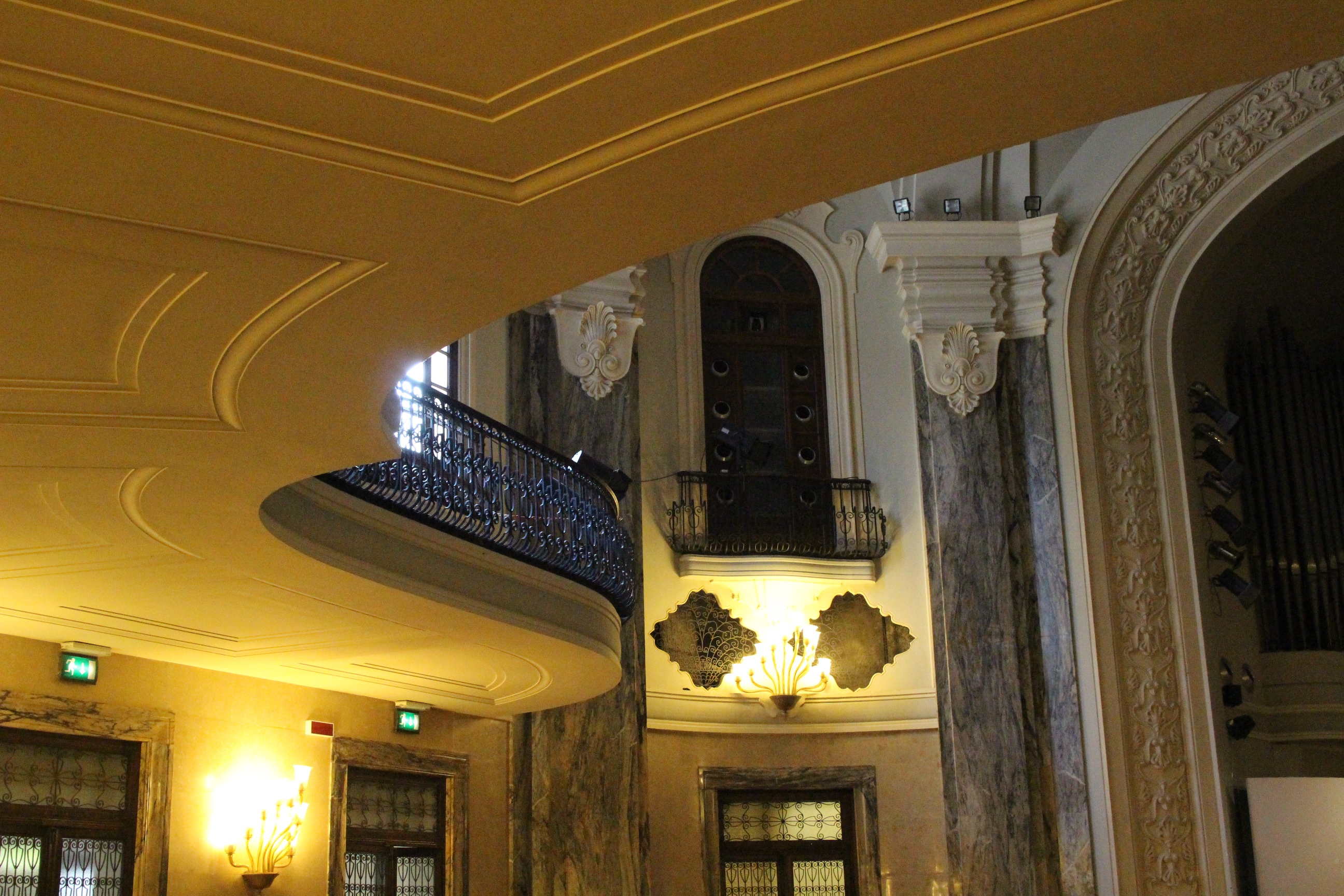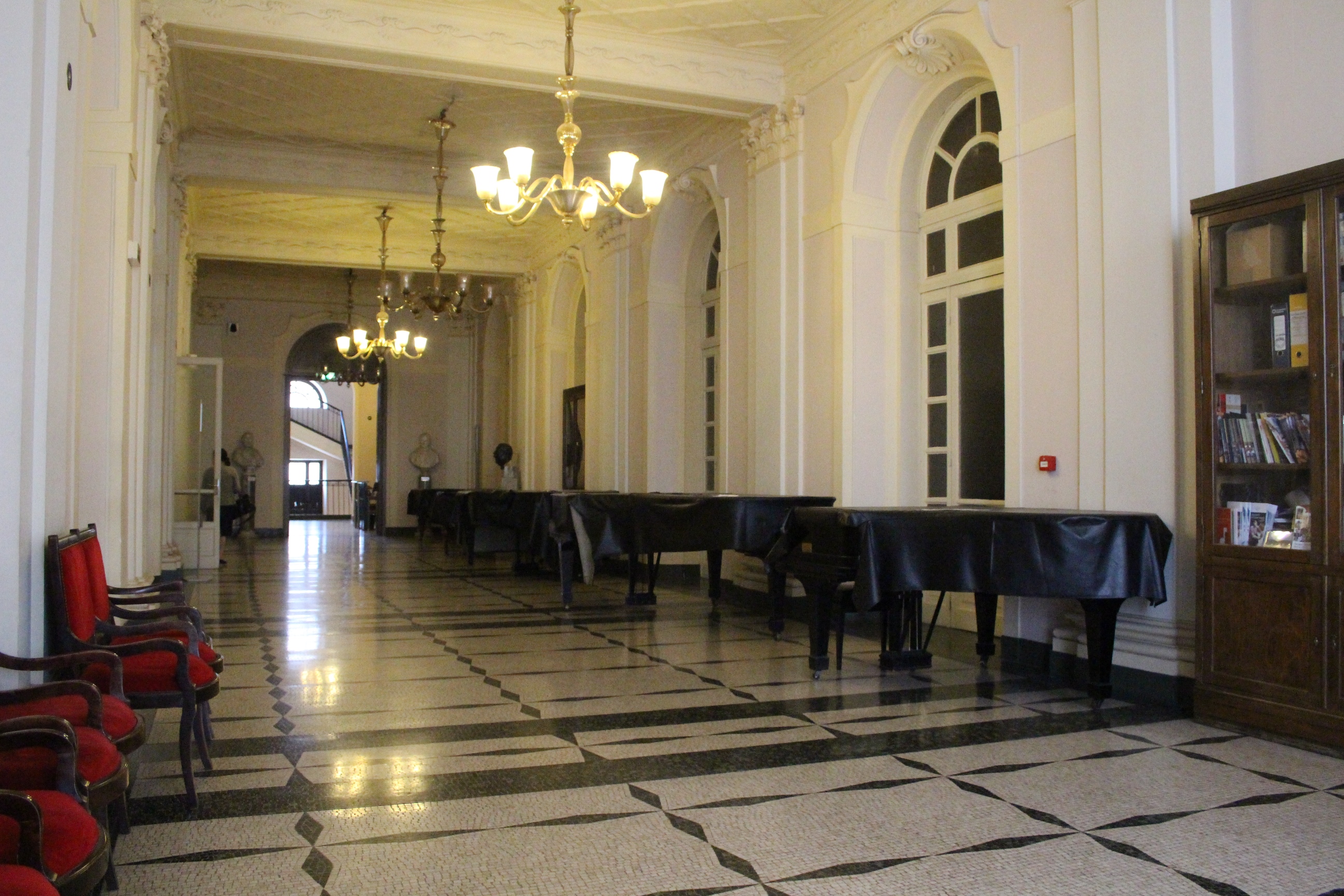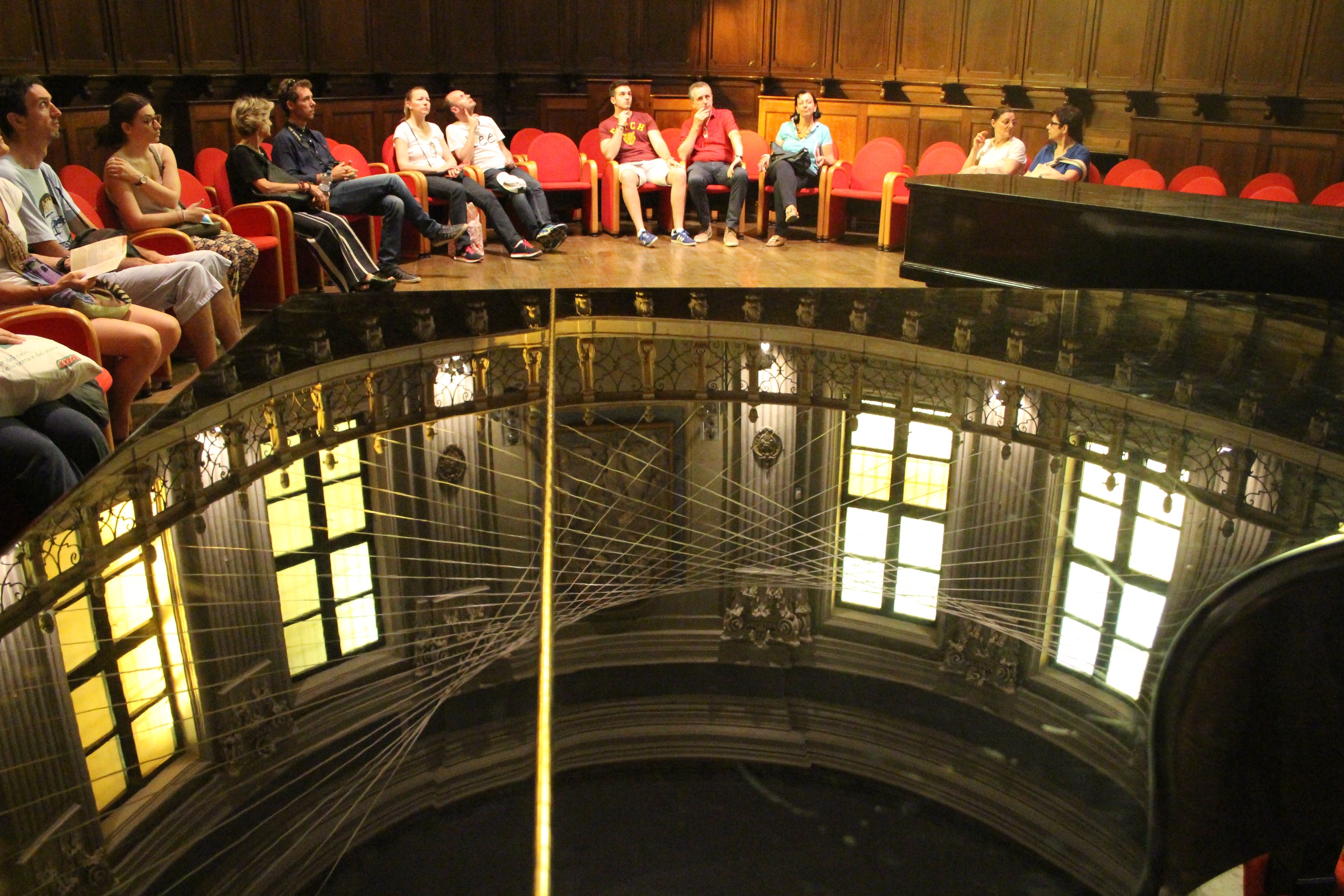 Altra sorpresa, e mi sono stupita di non averlo mai considerato né visitato in tanti anni che vivo qui, il Conservatorio Giuseppe Verdi. Poche, rapide parole: l’auditorium è meraviglioso. Ma non per modo di dire, per mancanza di termini o di immagine. È meraviglioso è basta. A forma di conchiglia, con raffinati decori liberty, tra lampade, la balaustra in ferro battuto, la luminosità della sala… Insomma, non mi aspettavo di trovare un luogo così bello. E invece. Al piano di sopra, poi, dettagli di aule studio, pianoforti in “scuderia” come ho pensato vedendoli succedersi in quantità tutti coperti dalle loro cerate, bacheche con spartiti e valigette, e una preziosa galleria degli strumenti che contiene curiosità e anche pezzi antichi e di pregio.