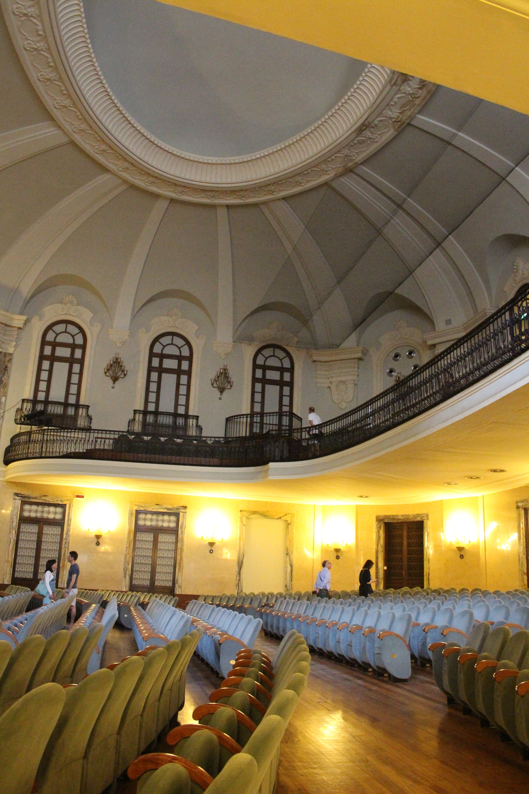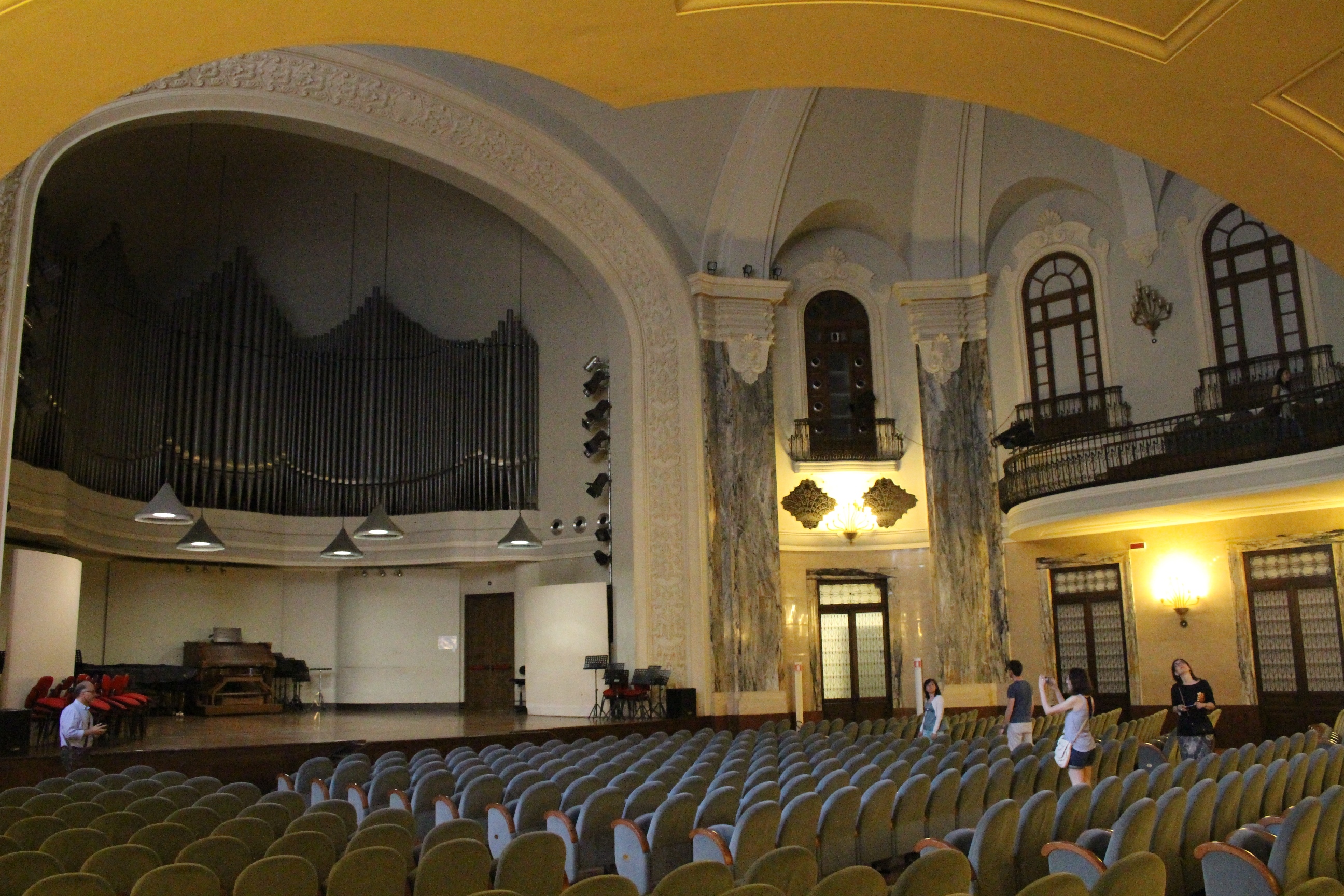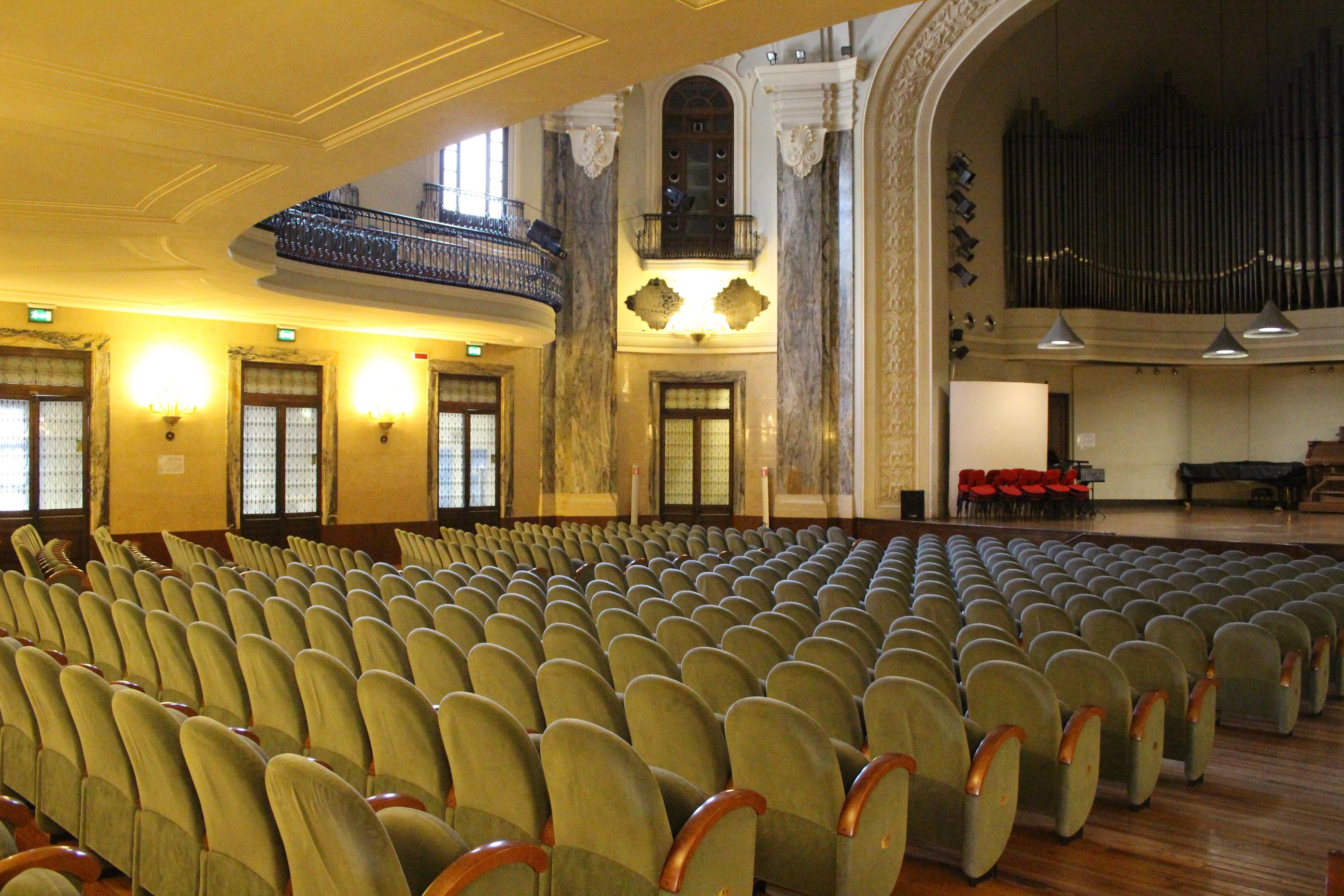 Altra sorpresa, e mi sono stupita di non averlo mai considerato né visitato in tanti anni che vivo qui, il Conservatorio Giuseppe Verdi. Poche, rapide parole: l’auditorium è meraviglioso. Ma non per modo di dire, per mancanza di termini o di immagine. È meraviglioso è basta. A forma di conchiglia, con raffinati decori liberty, tra lampade, la balaustra in ferro battuto, la luminosità della sala… Insomma, non mi aspettavo di trovare un luogo così bello. E invece. Al piano di sopra, poi, dettagli di aule studio, pianoforti in “scuderia” come ho pensato vedendoli succedersi in quantità tutti coperti dalle loro cerate, bacheche con spartiti e valigette, e una preziosa galleria degli strumenti che contiene curiosità e anche pezzi antichi e di pregio.