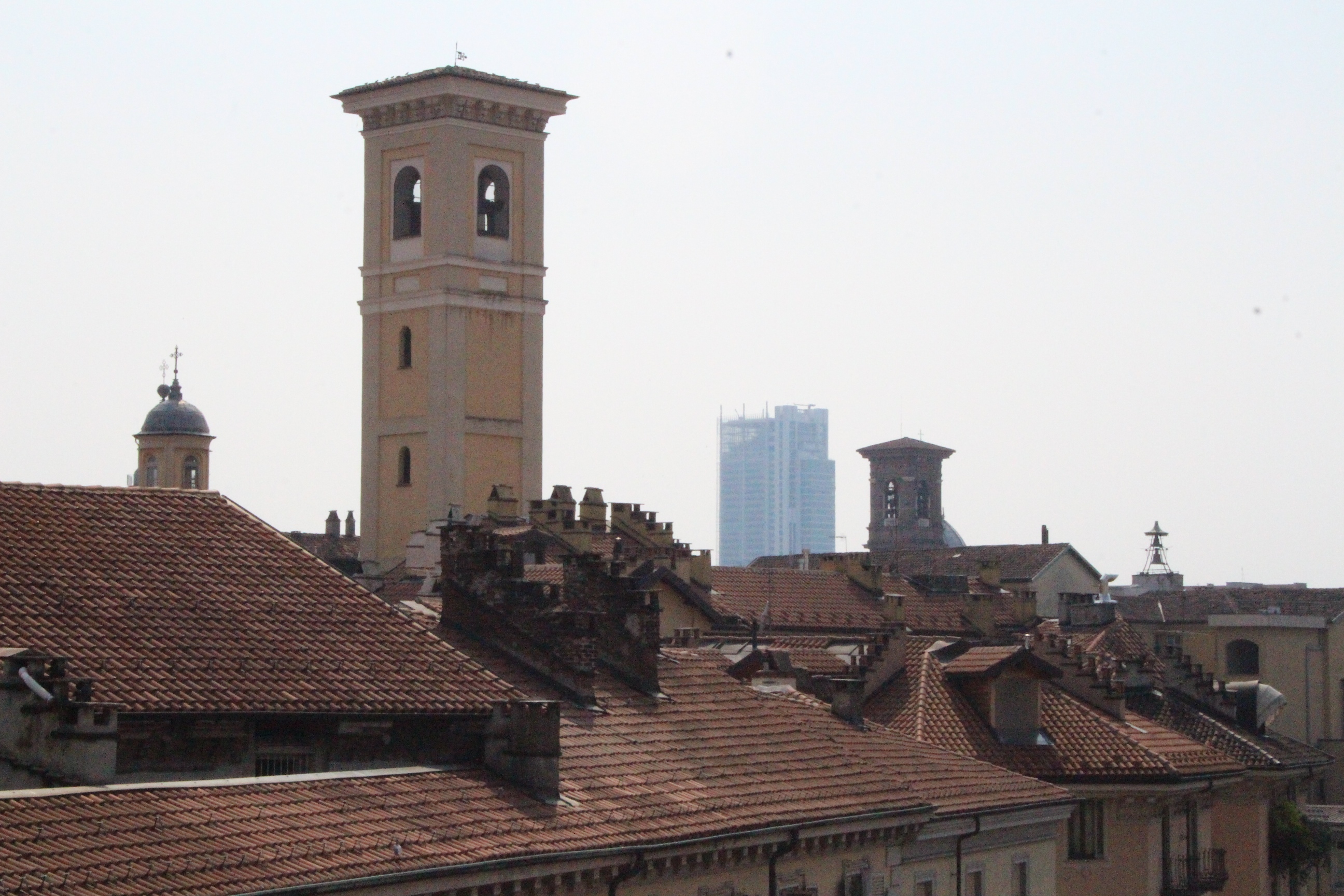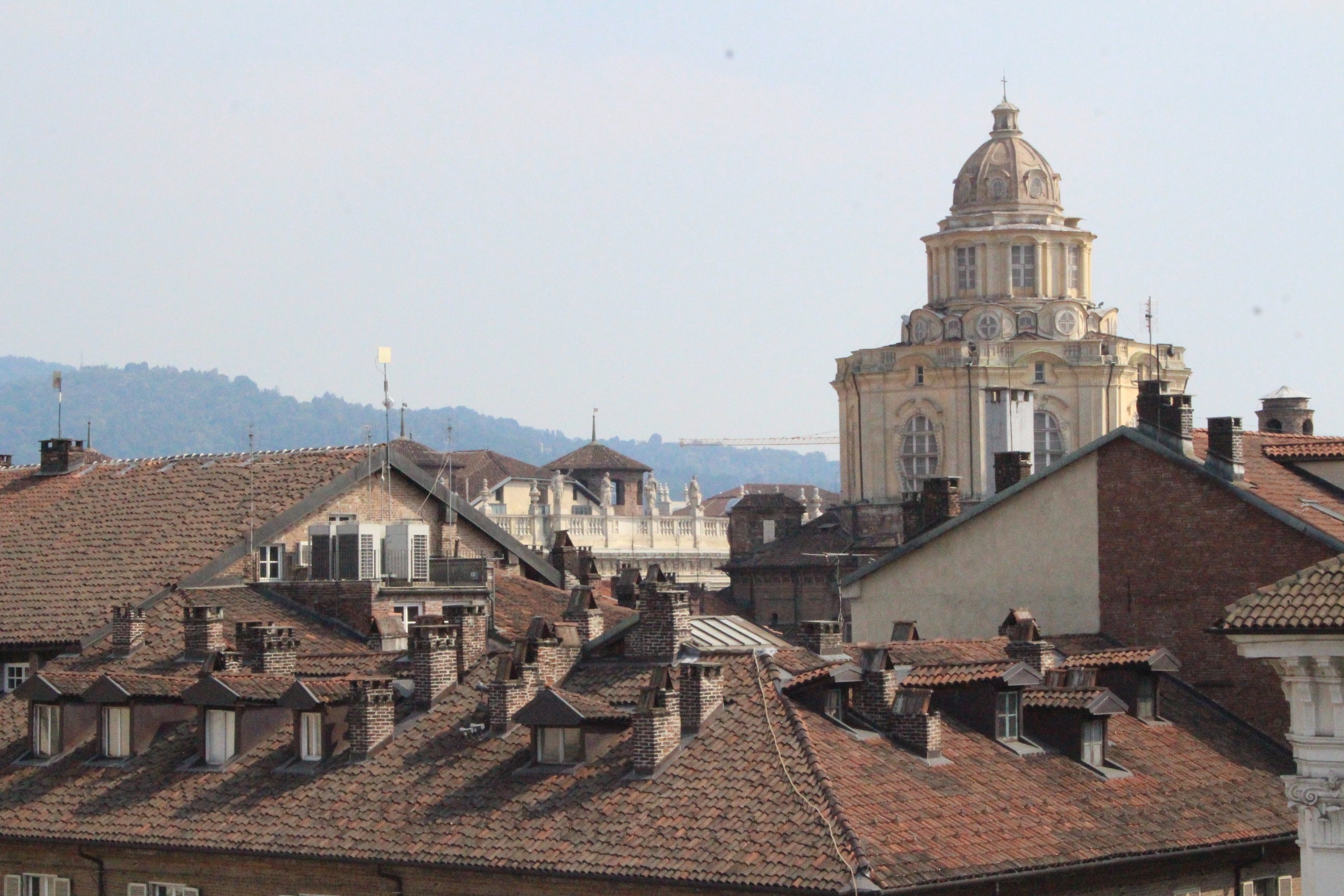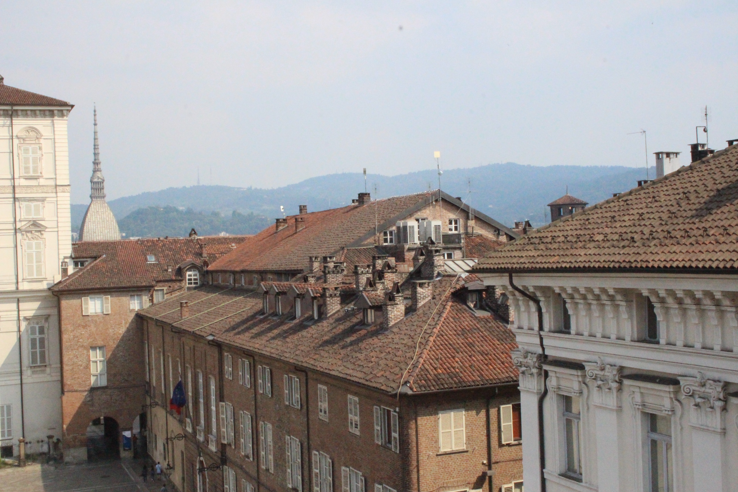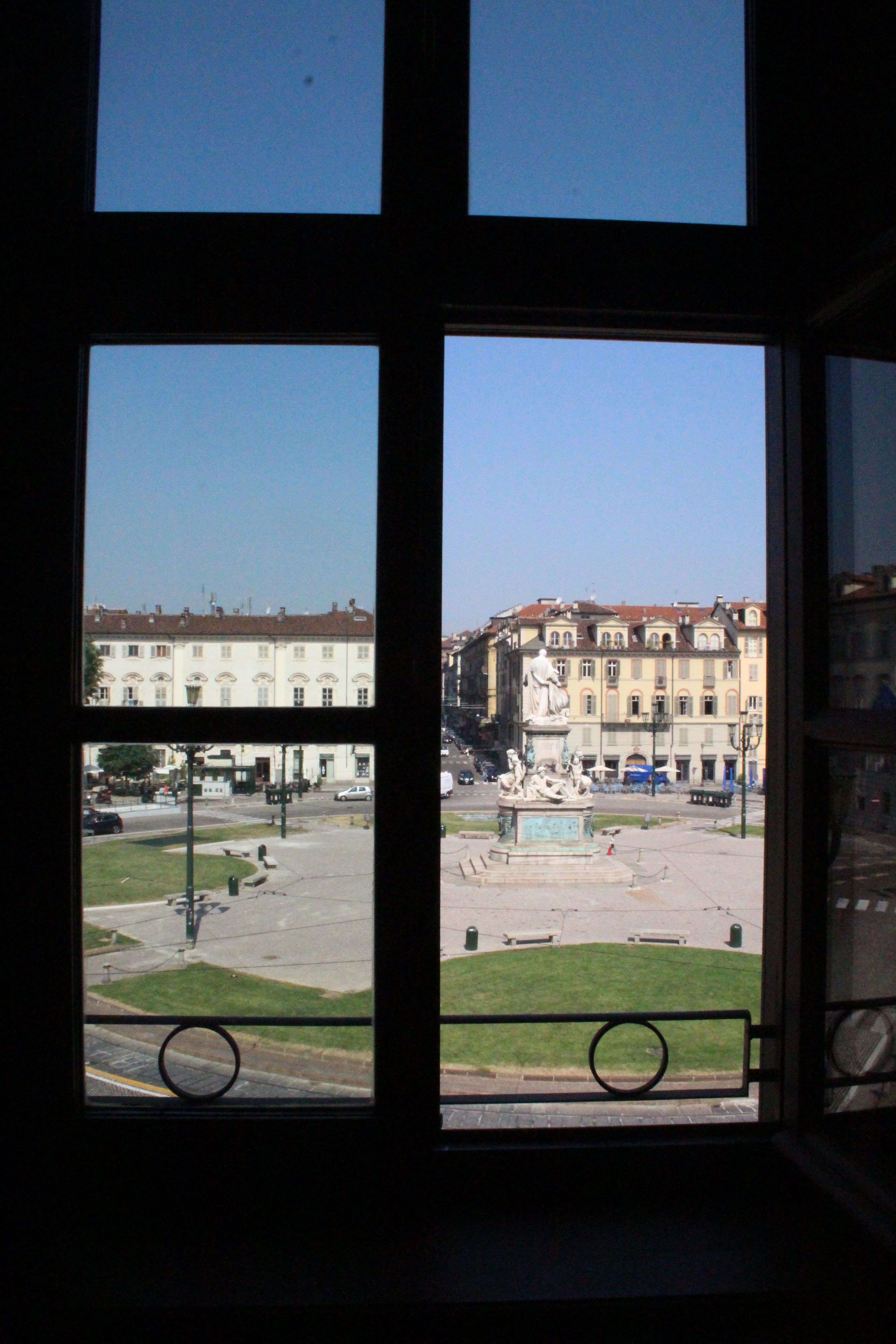 Tra le altre cose davanti a cui si passa spesso senza nemmeno pensare possano essere dei luoghi preziosi, la chiesa di Santa Pelagia, in via san Massimo, per lo più sempre chiusa, adibita per poche ore a settimana al culto ortodosso-moldavo e sede di concerti. È una piccola bomboniera barocca, e possiede un coro che non si sviluppa dietro l’abisde, ma di lato, in forma ovale e reso ancora più suggestivo dalla presenza di una decorazione geometrica con fili sospesi e di due pianoforti. Altra meraviglia è Palazzo Saluzzo Paesana, di cui mi è stato possibile visitare solo il cortile e il primo piano del loggiato: il loft esclusivo aperto dall’architetto che ne è proprietario era preso d’assalto. Non mi sono sentita delusa: il palazzo non è stato da meno, pare fosse secondo solo a Palazzo Reale per sontuosità. Con un passaggio dal bello e antico al brutto e moderno, sono passata anche dal Palazzo dei Lavori Pubblici, di cui anche Culicchia parla male nel suo “Torino è casa mia”. Progetto moderno, affacciato su una piazza che, tra Porte Palatine di età romana, Duomo rinascimentale, Palazzo Reale e Palazzo Chiablese che rispecchiano dell’età dei Savoia, ha monumenti che raccontano duemila anni di storia, ci sta che questa specie di casermone rosso-mattone risulti un po’ un pugno nell’occhio. Ma provate a salire sulla terrazza… Superga, la Mole, piazza Castello, le Porte Palatine, e ancora il Quadrilatero, la casa-torre più antica della città, i tetti, comignoli e cupole tra cui quella barocca di San Lorenzo, e la città che si allarga, spazia, si racconta attraverso le sue vie e i suoi monumenti.