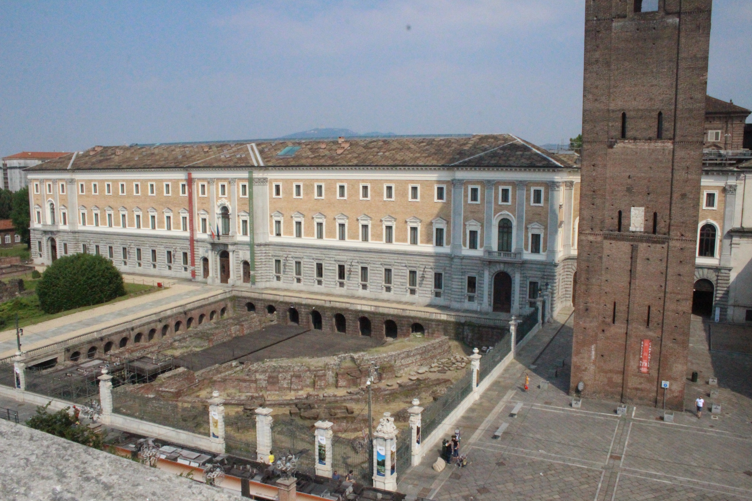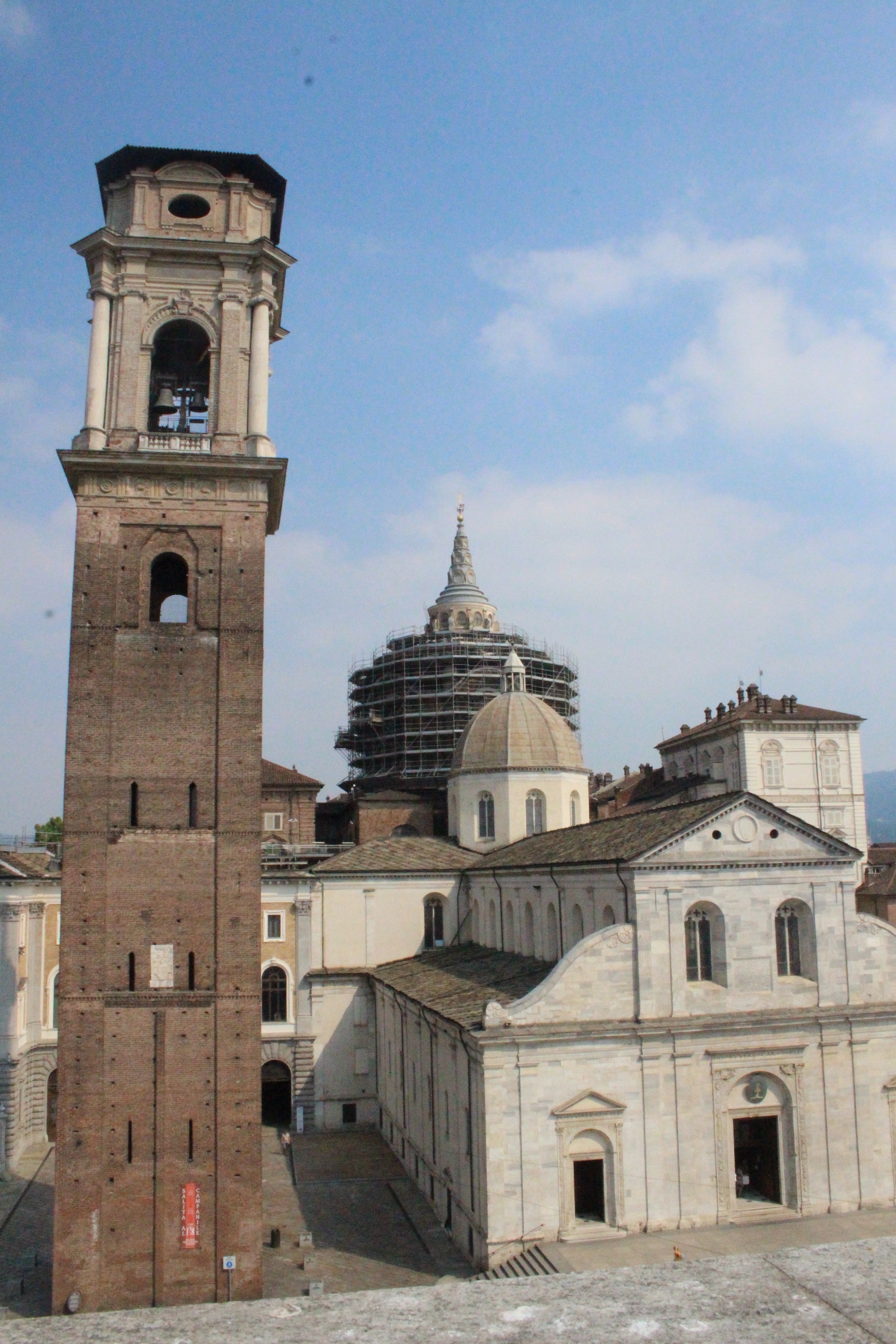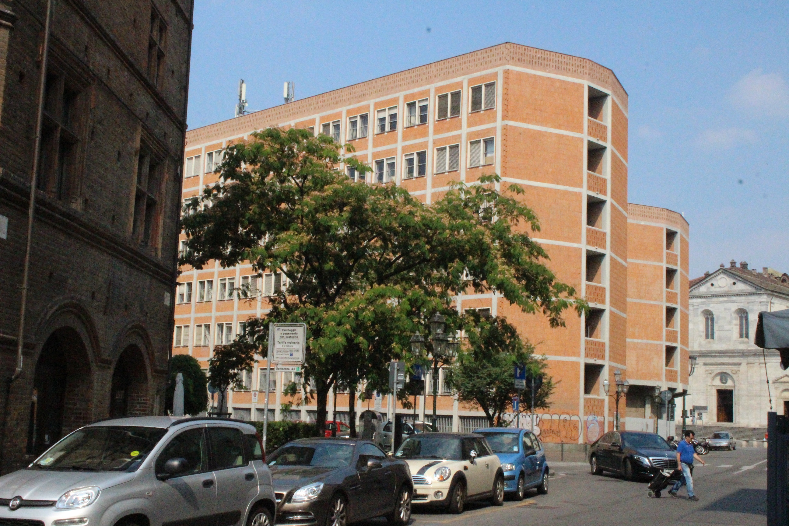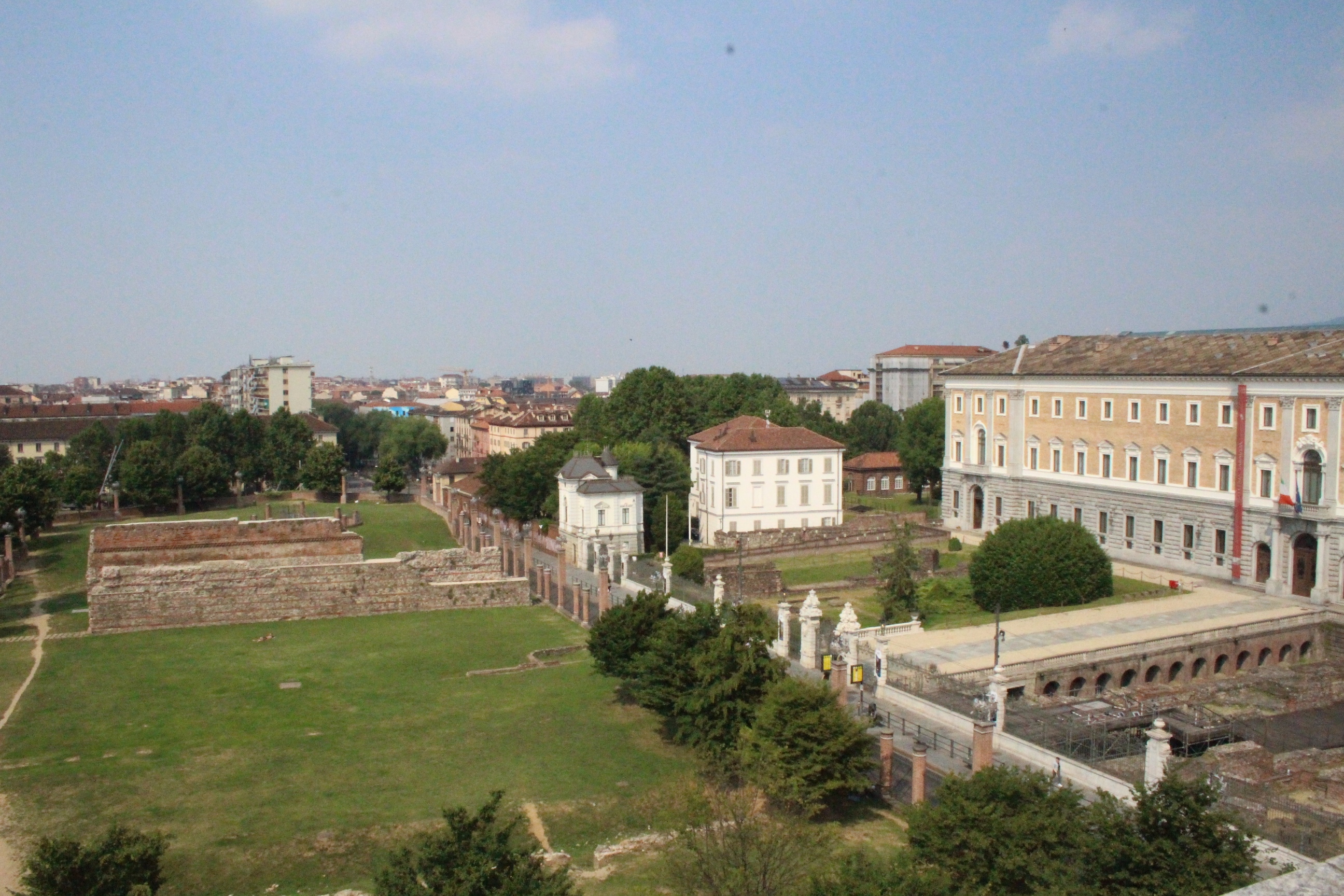 Tra le altre cose davanti a cui si passa spesso senza nemmeno pensare possano essere dei luoghi preziosi, la chiesa di Santa Pelagia, in via san Massimo, per lo più sempre chiusa, adibita per poche ore a settimana al culto ortodosso-moldavo e sede di concerti. È una piccola bomboniera barocca, e possiede un coro che non si sviluppa dietro l’abisde, ma di lato, in forma ovale e reso ancora più suggestivo dalla presenza di una decorazione geometrica con fili sospesi e di due pianoforti. Altra meraviglia è Palazzo Saluzzo Paesana, di cui mi è stato possibile visitare solo il cortile e il primo piano del loggiato: il loft esclusivo aperto dall’architetto che ne è proprietario era preso d’assalto. Non mi sono sentita delusa: il palazzo non è stato da meno, pare fosse secondo solo a Palazzo Reale per sontuosità. Con un passaggio dal bello e antico al brutto e moderno, sono passata anche dal Palazzo dei Lavori Pubblici, di cui anche Culicchia parla male nel suo “Torino è casa mia”. Progetto moderno, affacciato su una piazza che, tra Porte Palatine di età romana, Duomo rinascimentale, Palazzo Reale e Palazzo Chiablese che rispecchiano dell’età dei Savoia, ha monumenti che raccontano duemila anni di storia, ci sta che questa specie di casermone rosso-mattone risulti un po’ un pugno nell’occhio. Ma provate a salire sulla terrazza… Superga, la Mole, piazza Castello, le Porte Palatine, e ancora il Quadrilatero, la casa-torre più antica della città, i tetti, comignoli e cupole tra cui quella barocca di San Lorenzo, e la città che si allarga, spazia, si racconta attraverso le sue vie e i suoi monumenti.