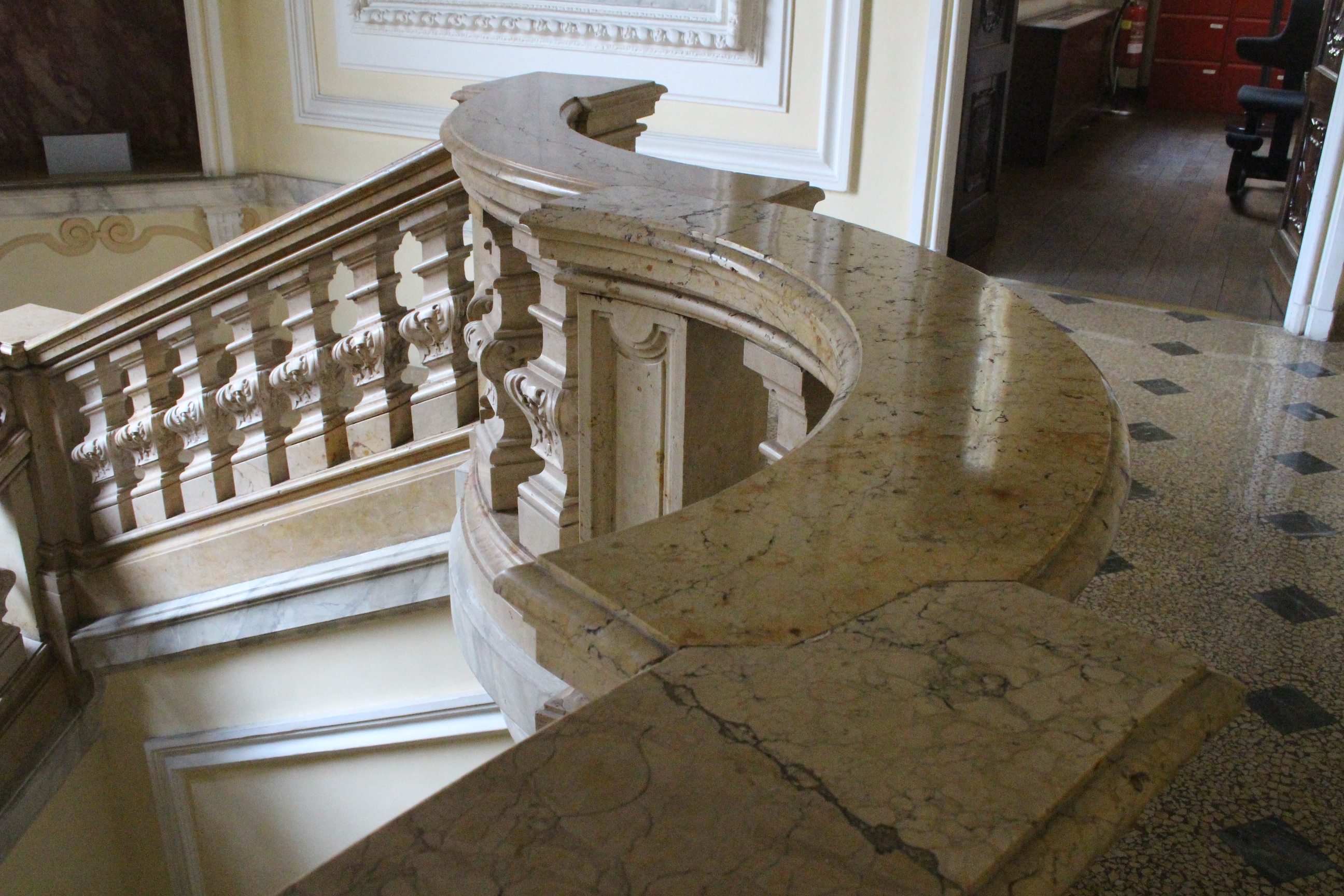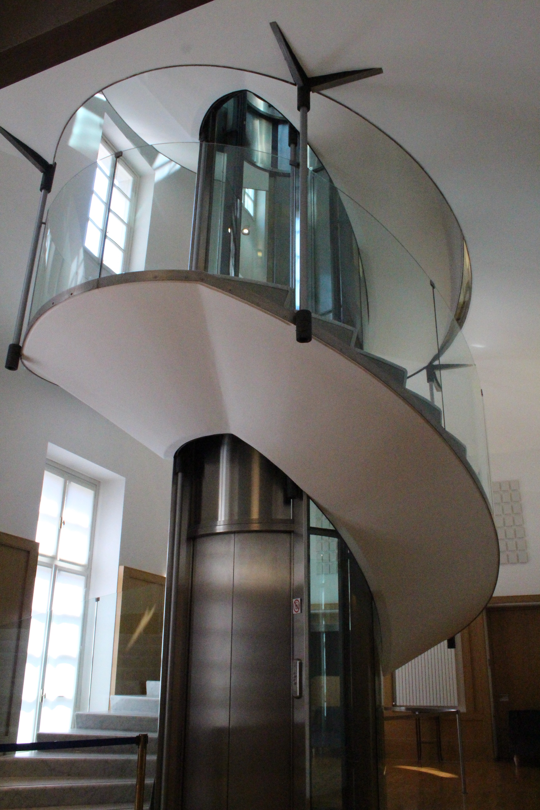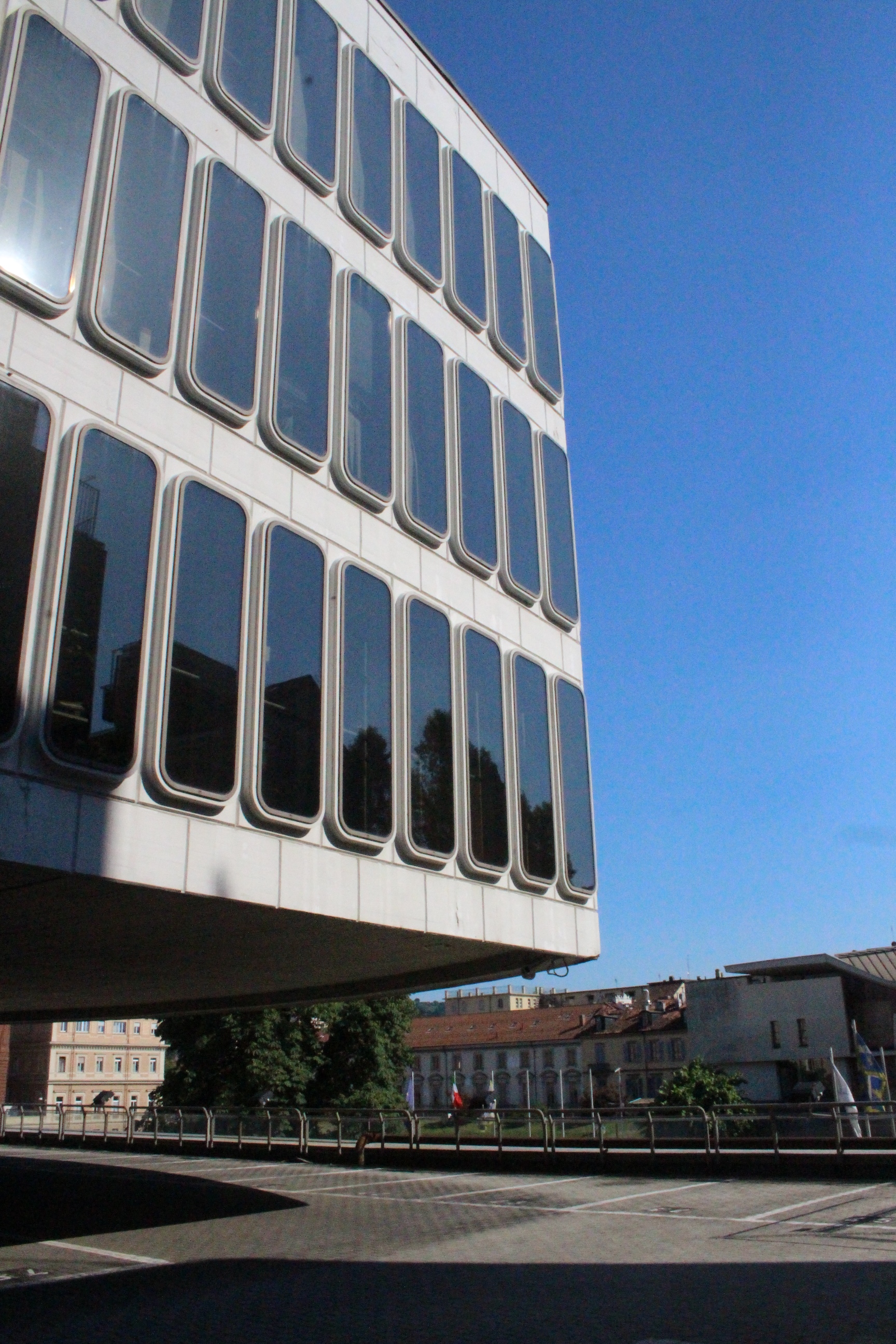 A Palazzo Birago, sede della Camera di Commercio, ero stata già per la conferenza stampa di presentazione di Open House. Su progetto di Filippo Juvarra, il palazzo di via Carlo Alberto è sontuoso e bellissimo, arricchito in questi giorni da un altrettanto preziosa mostra di abiti di lusso. Sale barocche, finestre sul meraviglioso parco di Palazzo Cisterna, un ingresso e un cortile geometrici e sontuosi… Insomma, uno dei palazzi più belli del centro, fascino confermato dal fatto che è stato uno dei luoghi più visitati (2000 visite, dice l’organizzazione). Segue numericamente, per visite, Palazzo Affari, seconda sede della Camera di Commercio, un edificio geniale per struttura e scelte architettoniche, realizzato su progetto audace di Carlo Mollino, l’architetto del Teatro Regio. Complice la spiegazione di cui vi dicevo prima, anche una profana di architettura come me ha colto l’innovatività del progetto e ha capito alcuni passaggi relativi alle scelte strutturali. E poi, diciamocelo, lo scalone intero è qualcosa di superbo!