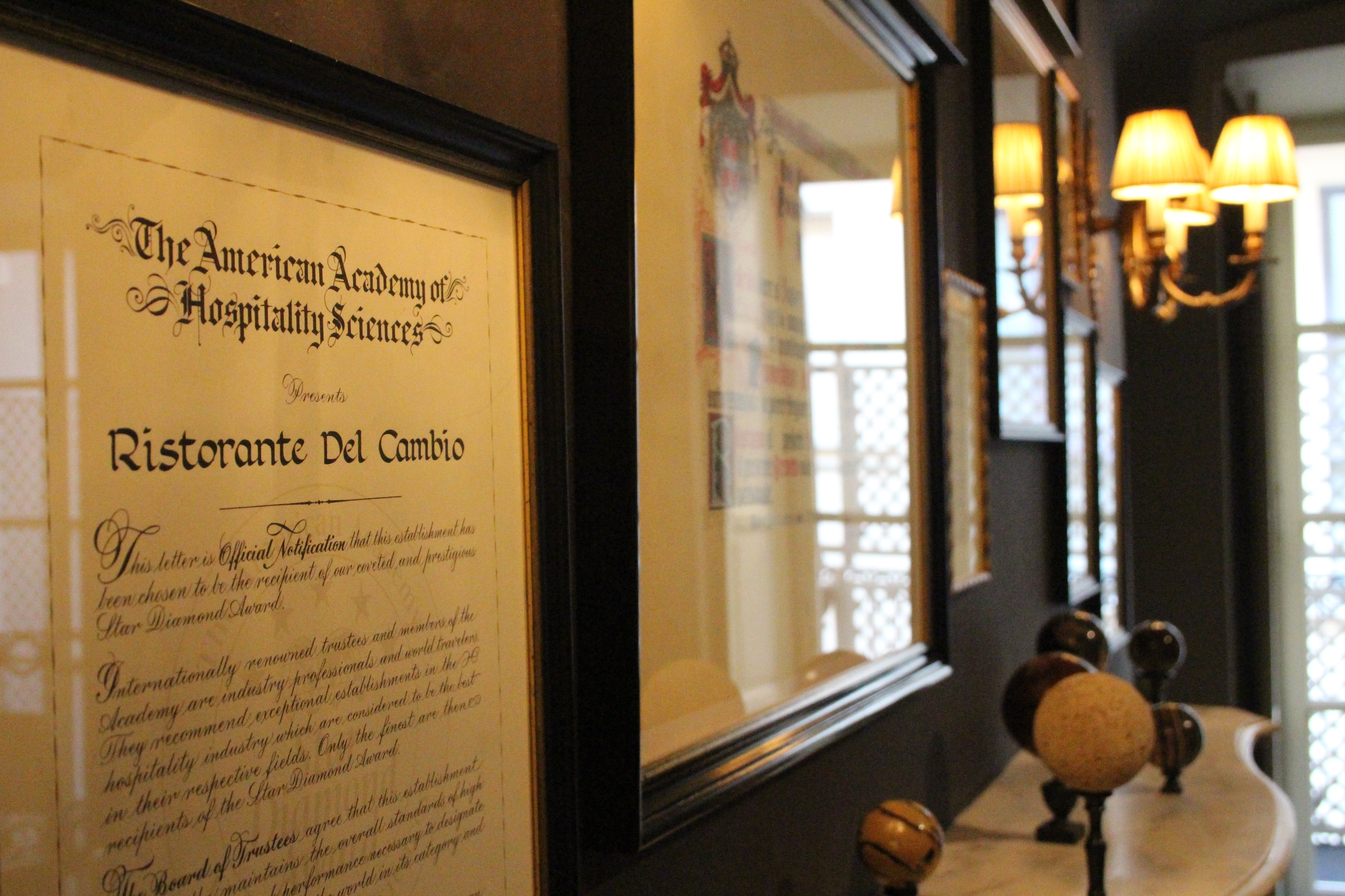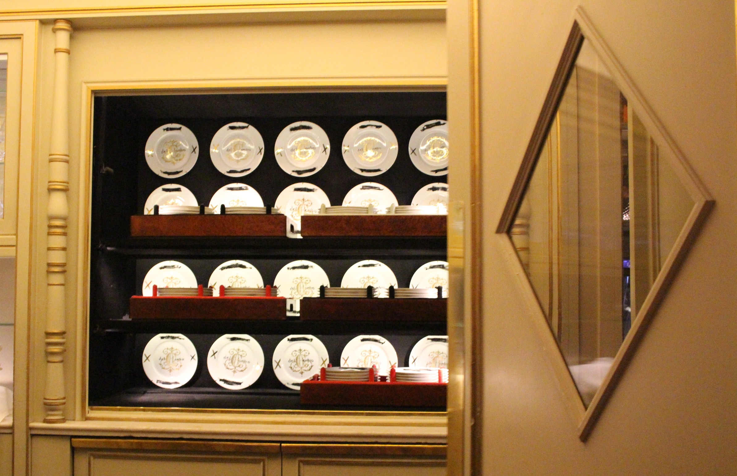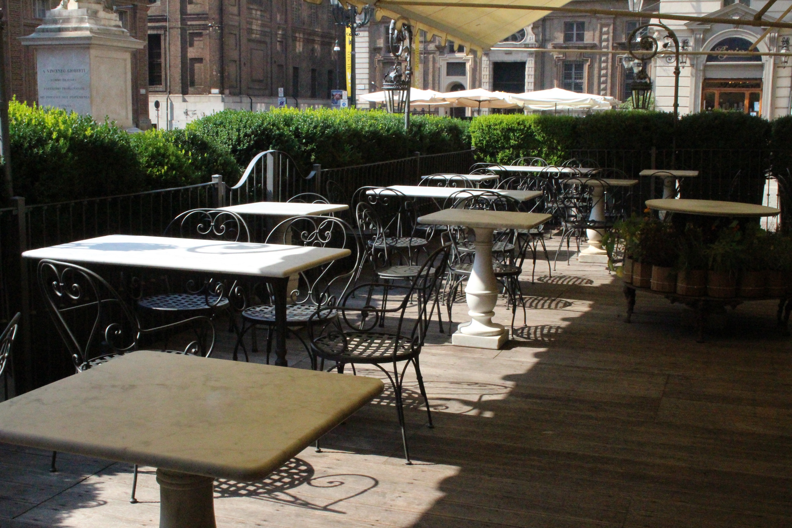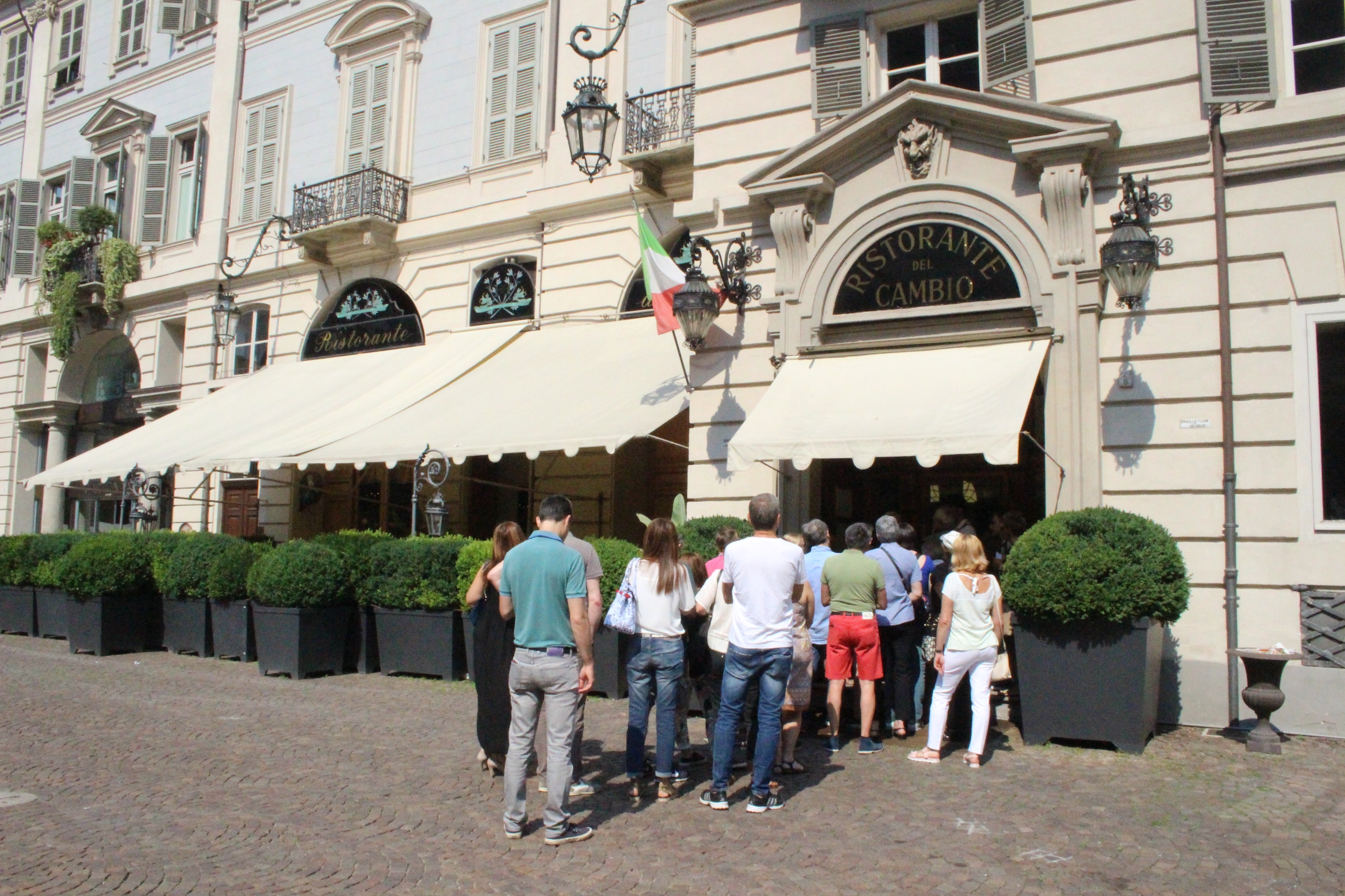 Dal mondo della pubblicità sembra uscito anche il Ristorante il Cambio, dove era solito passare il Conte di Cavour, e in generale le personalità che frequentavano il primo parlamento di Italia, piazzato lì di fronte, a Palazzo Carignano. Ambiente di lusso è dire poco: anche qui l’attenta cura dei dettagli storici si abbina a una modernizzazione che in niente ha stravolto lo spirito di esclusività del locale, ma che anzi lo ha esaltato. Ho anche scoperto che dentro c’è una sala “moderna” con un’installazione a specchi di Pistoletto, e che al piano di sopra c’è una sorta di lounge bar con poltrone raffinate in velluto verde molto stile avanguardie e Belle Epoque che potrebbero aver ospitato Baudelaire, tra un caminetto, un libro e un bicchiere di assenzio. E invece è un locale nuovo, messo su per ampliare l’offerta del ristorante. Chiaramente, non ho nemmeno osato informarmi sui prezzi. Son cose rare, come le sole due ore in cui è rimasto aperto il posto per Open House.