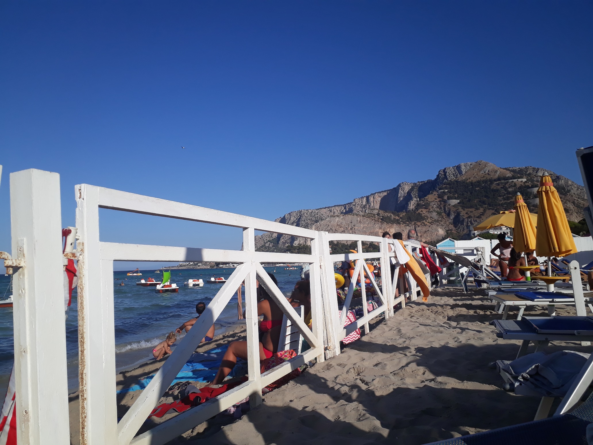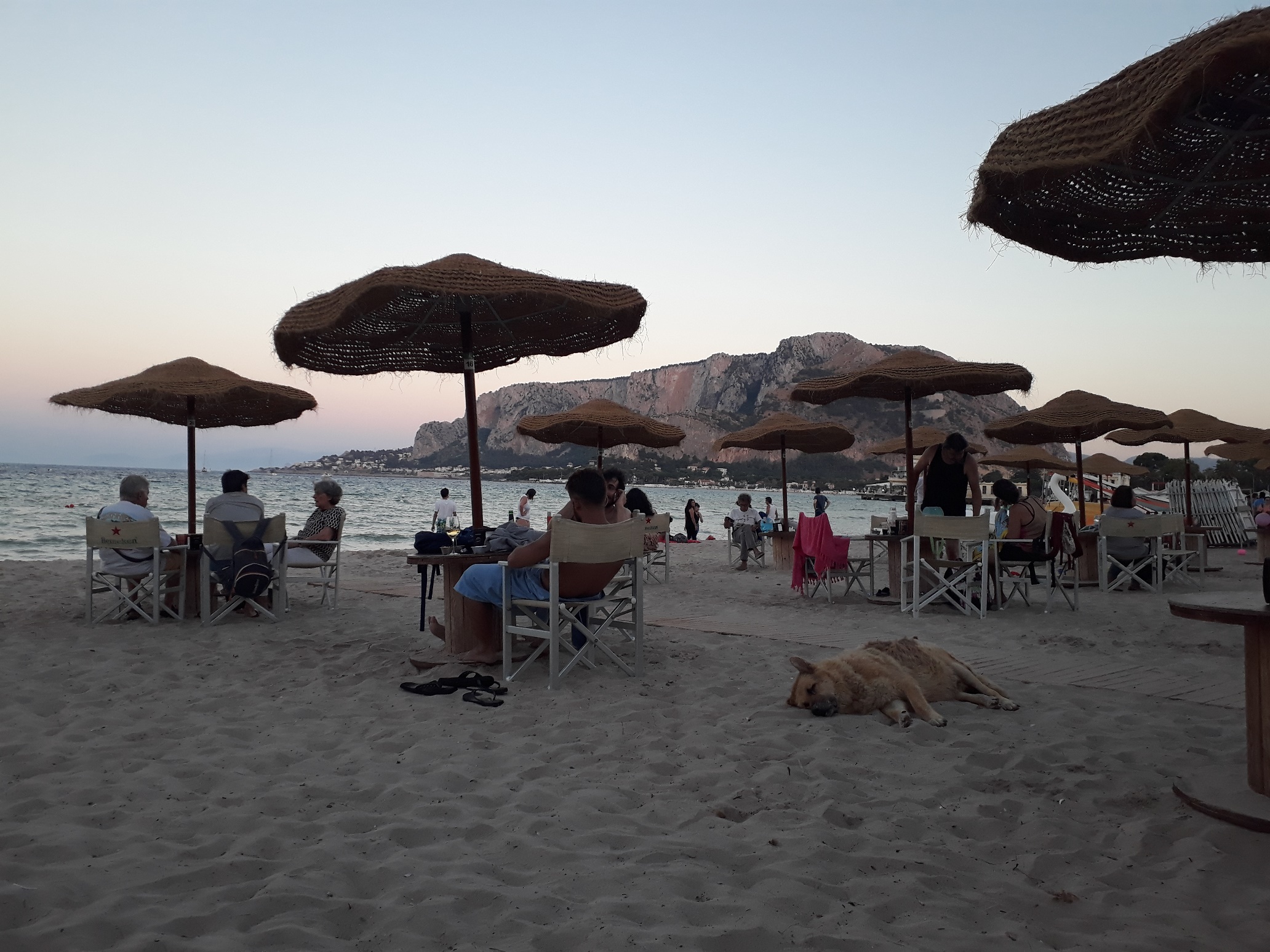 Lo stesso vale per le tre ore di mare fatte a Mondello, che è parte di Palermo stessa ma è anche altro. A Mondello ci si arriva dopo 40 minuti di bus, e il bus per il mare che parte nei pomeriggi di luglio è qualcosa di molto folcloristico, attraversa la città, ne taglia la periferia e poi, dopo un tragitto in campagna, sbuca sul lungomare. Si scende e si respira aria di vacanza. In tanti ci hanno sconsigliato di andare a Mondello: troppa gente, troppo caos. Ma per chi ha voglia di vivere e toccare con mano l’atmosfera pura delle vacanze al mare, Mondello è perfetta. Oltre che stupenda: spiaggia di sabbia lunga e bella, un’acqua azzurra limpida e calda che sembra impossibile, e invece. Distrutte dal caldo e dai chilometri a piedi, abbiamo fatto la pazzia di prendere un lettino per due ore, era tardi, lo stabilimento avrebbe chiuso da lì a breve e ci hanno quindi omaggiate di un posto in prima fila. Un lusso da dive, che tuttavia abbiamo vissuto poco perché una volta tuffate siamo rimaste a mollo più di un’ora, a godere del panorama, dei colori, della serenità e del divertimento che emanava da quella fila di pedalò all’orizzonte da cui si tuffava ridendo un gruppone di ragazzi. Ecco, Mondello sprizzava questa cosa qua: le vacanze, quelle della scuola, quelle che per tre mesi non fai altro se non divertirti come un matto alla spiaggia. C’era una vena della mia infanzia in Liguria in quella scena, certo allestita in un teatro ben più vasto e più bello. Mondello è la spiaggia chic, ma non bisogna essere necessariamente vip per farci un salto – anzi, un bagno: passata l’ora di chiusura dello stabilimento, quando ci hanno sfrattate, è stato sufficiente aggirare la transenna che delimitava lo spazio privato e tornare a stendersi sulla sabbia. La battigia è di tutti: palermitani che dopo il lavoro vengono in bici a farsi un tuffo, turisti persi dentro un libro, pescatori e aitanti giocatori di beach volley. Il valore aggiunto è stato il bar sulla spiaggia – L’ombelico del mondo – che ci ha ospitate per un aperitivo sulla sabbia protratto fino alle dieci di sera, mentre i tavoli si riempivano di chiacchiere distese e in acqua c’era ancora un sacco di gente che sguazzava godendo del caldo e dell’atmosfera. Anche a Mondello, naturalmente, bisogna tornare.