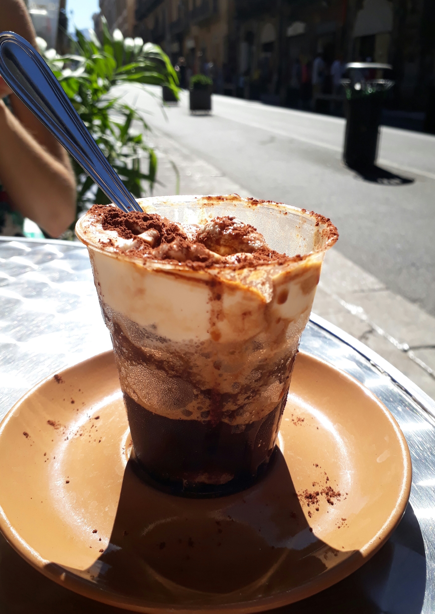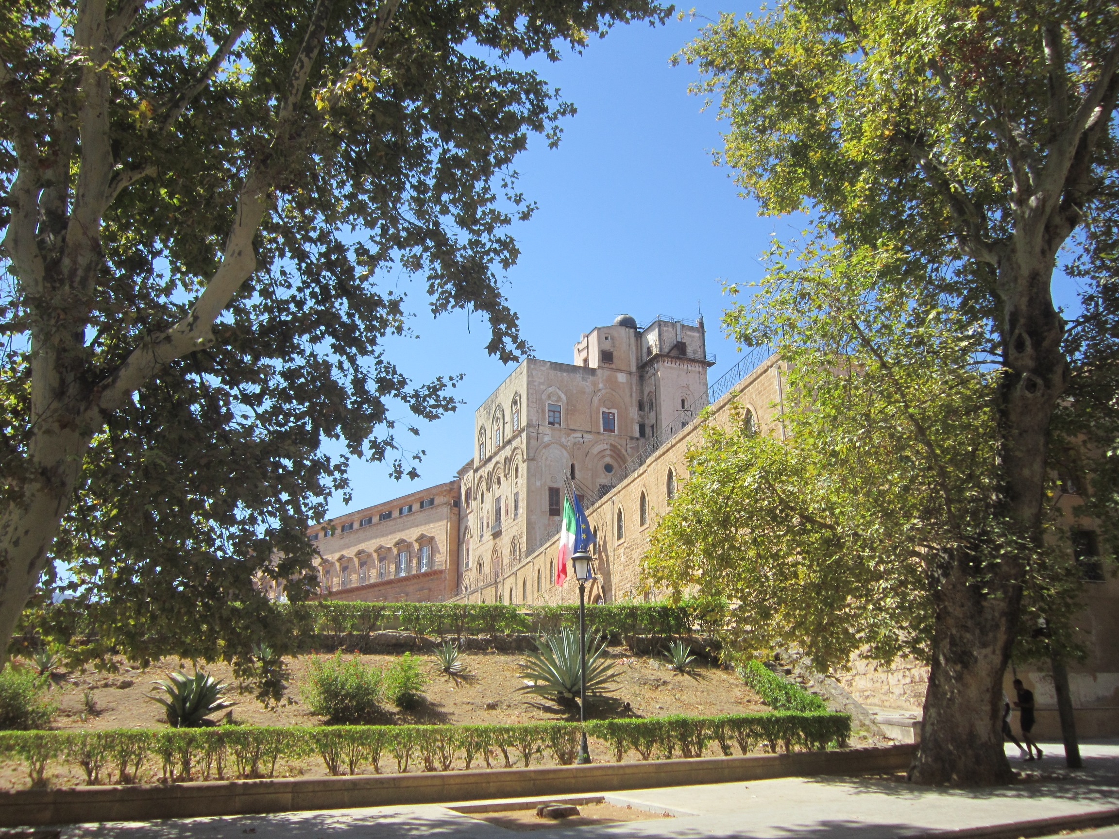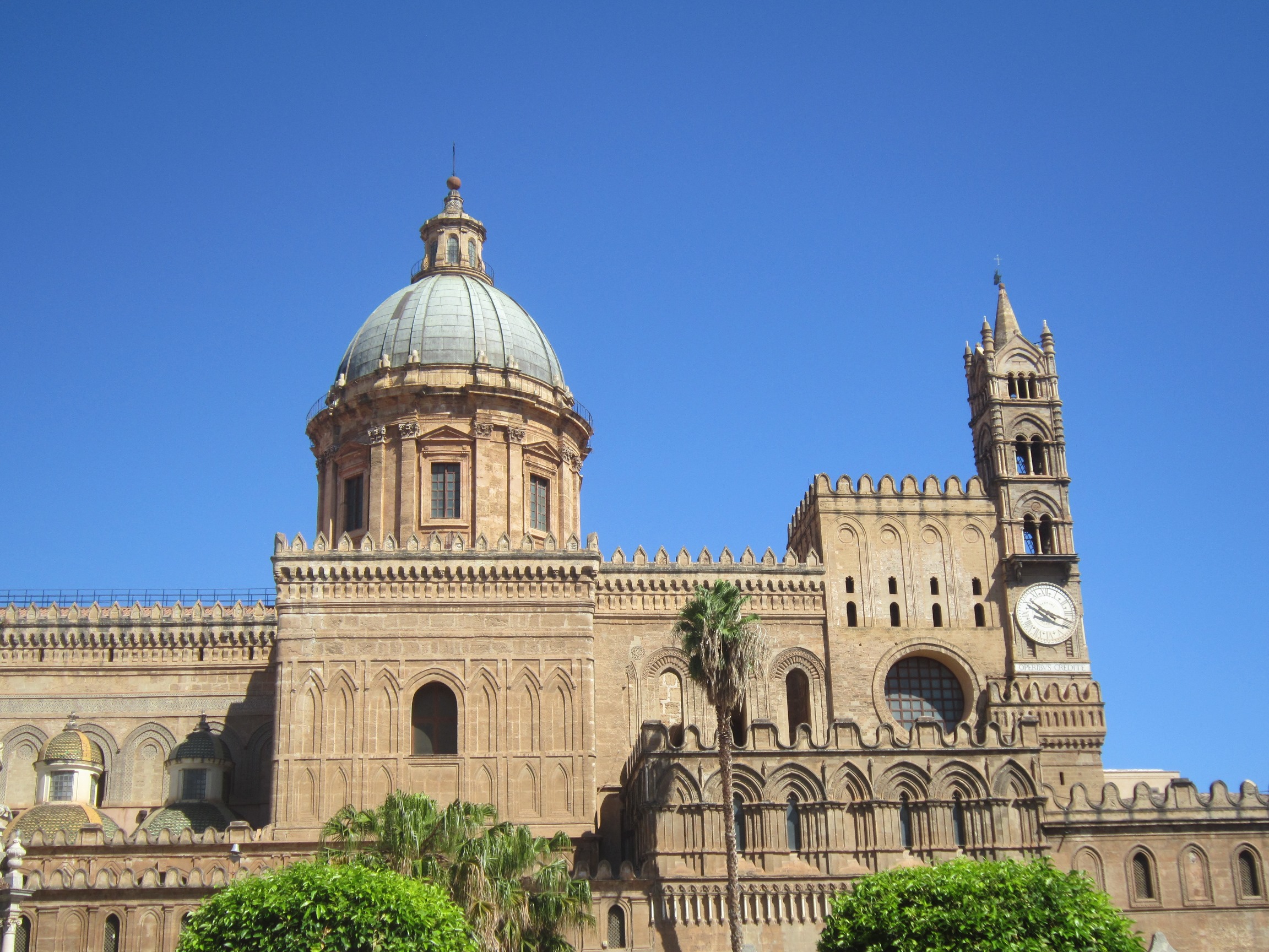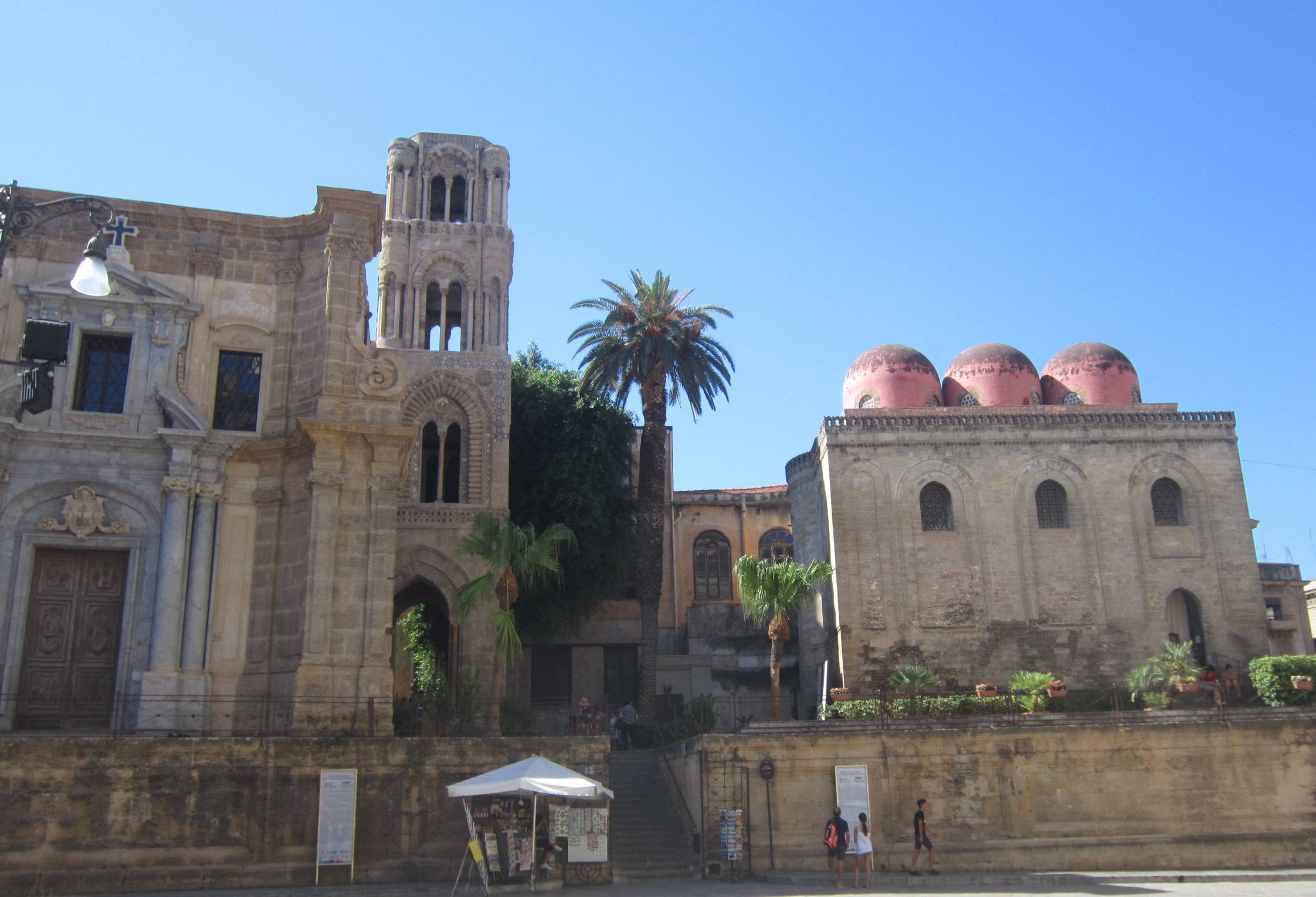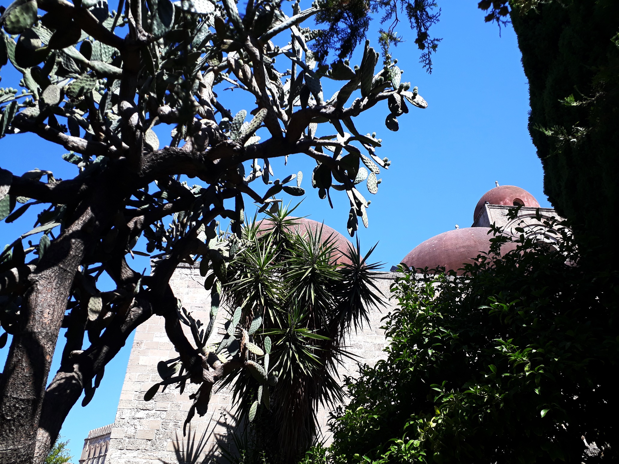 La Conca d’oro, la luce dorata, i mosaici. Impossibile è narrare e descrivere la pura meraviglia dei tanti mosaici che abbiamo visto di chiesa in cattedrale in palazzo. Come un distillato capace di intessere insieme, in un unico risultato, ricchissimo, cultura greca, araba e normanna: a dirlo è la lapide che si trova al Palazzo dei Normanni, vicino all’ingresso della Cappella Palatina. La bellezza, la storia, la Cappella Palatina e i suoi soffitti, mosaici e icone. Dovete andarci e vederla, perché io di quella meraviglia non so dirvi né so proporvi fotografie. Oppure la cattedrale con la sua Meridiana, la visita serale ai tetti, grande escamotage per evitare l’insolazione: alle 20.30 il sole era già calato e Palermo brillava sotto a una cupola blu-indaco con striature di arancio laggiù, verso il mare, mentre il campanile normanno svettava sulla piazza sottostante e tentavamo di catturare in foto l’unicità dei colori e delle sensazioni di quella passeggiata sui tetti. La scoperta inaspettata di San Cataldo e Santa Maria dell’Ammiraglio, due chiese e due universi culturali in un’unica piazza, elegantissima, dove un intenso profumo di torrefazione ci ha attratte verso il caffè e cornetto al pistacchio della seconda colazione.