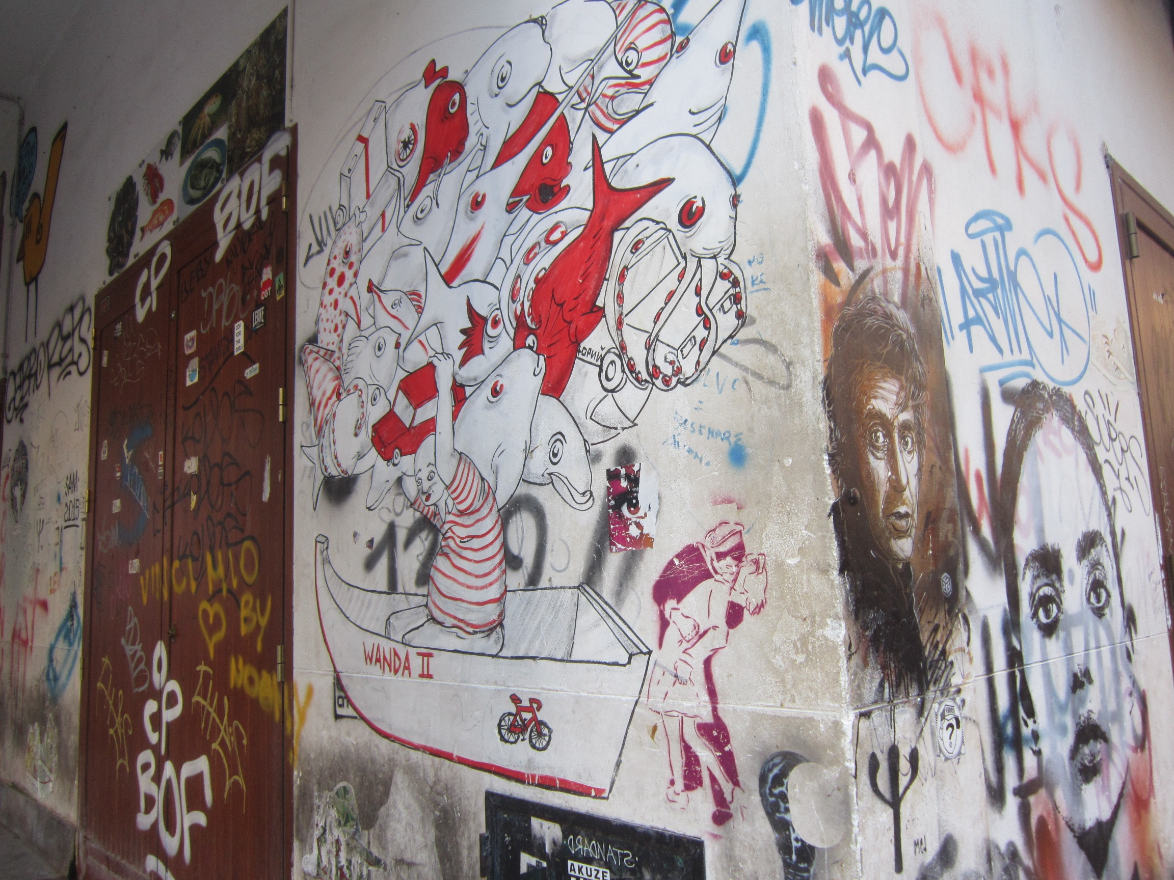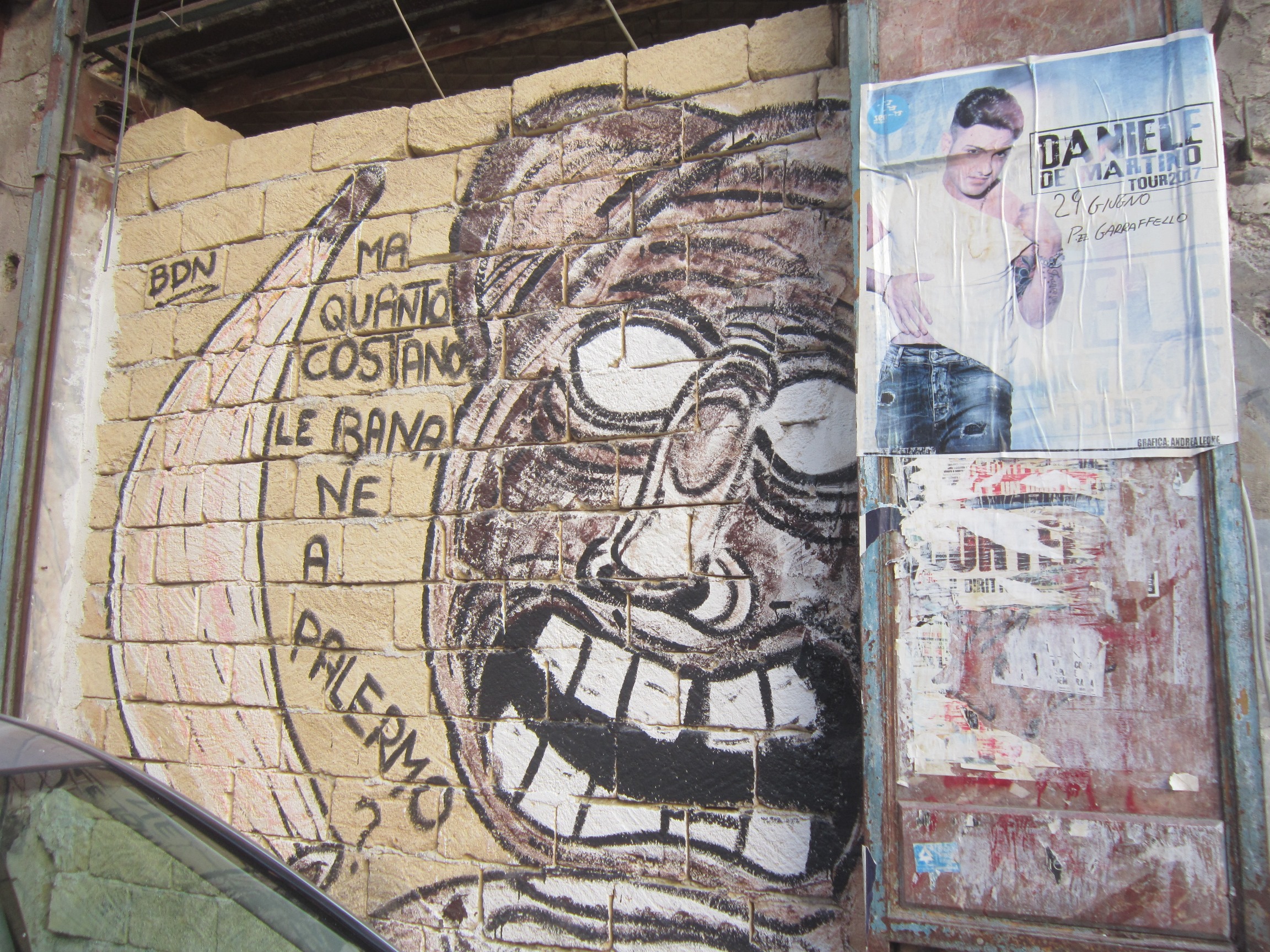 La Vucciria è un posto spettrale quanto affascinante, lo abbiamo intuito quella sera e riscoperto i giorni seguenti, alla luce del sole: una piazza bombardata durante la seconda guerra, dove tutto è rimasto diroccato come allora, palazzi, balconi e addirittura l’insegna della banca nazionale. Una fotocopia di più di mezzo secolo fa nel cuore della città, oggi diventata centro della movida e parco per street artist, che si sono dilettati a interpretare e disegnare sulle superfici urbane. Le figure sono diverse e varie, affascinano per numero, colori, idee e quantità. Come abbiamo appurato poi grazie a “Street art in Sicilia”, libro che anche Marco ha contribuito a scrivere e che abbiamo consultato al Bed and Book, l’arte di strada è viva e dinamica in Sicilia, e Palermo è uno dei suoi centri più attivi. La città parla anche così, e racconta di sé, delle sue contraddizioni, del suo passato e di un futuro che, come ci hanno spiegato entusiasti i nostri ospiti, è fatto anche di novità, di tante iniziative legate al mondo della cultura.