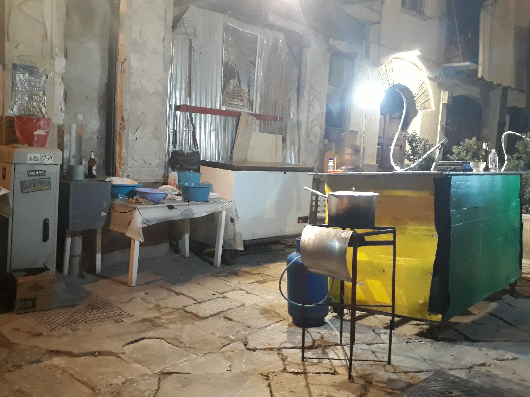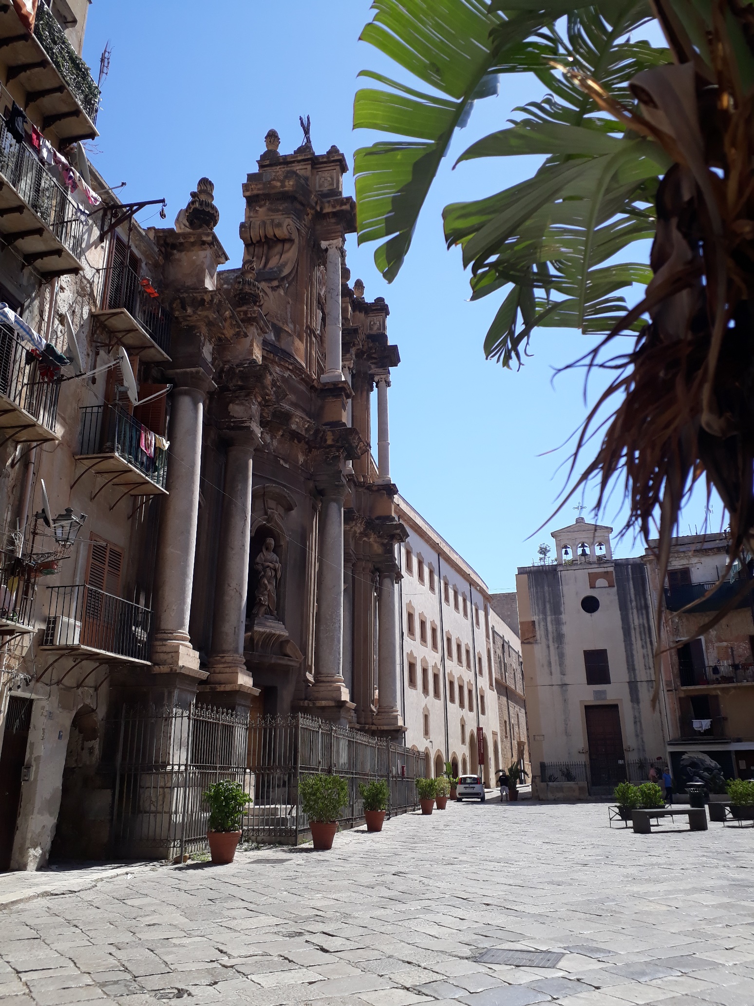 C’è stata una chiesa, e poi un intero quartiere di Palermo, che inconsapevolmente è diventato una sorta di meta da raggiungere per tutti i nostri pochi giorni a Palermo: la chiesa dello Spasimo, nel quartiere antico della Kalsa, subito a ridosso del porto turistico, la Cala. Fin dalla seconda sera non capivamo come arrivarci, come entrare, né erano espliciti gli orari: gli unici punti fermi erano che tutti ci avevano consigliato di andare perché era un posto molto suggestivo (lo immaginavo dopo aver letto D’Avenia), e che il lunedì i monumenti erano chiusi. Questo dettaglio ce lo ha ribadito Tony, il ragazzo che guidava l’Ape su cui abbiamo deciso – in una botta di pazzia – di fare il tour turistico in centro città. Contrattato il prezzo in modo molto italico e in una melodia di r allungate del palermitano del nostro cicerone, siamo salite sul potente mezzo con cui sfrecciare follemente per strade e vicoli del centro. Tony guidava con una mano sul manubrio e l’altra appoggiata al nostro sedile, intento a raccontarci cose e a guardarci mentre le raccontava, poco preso dal fatto che sarebbe stato forse più sicuro – più nordico? – guardare la strada, davanti.