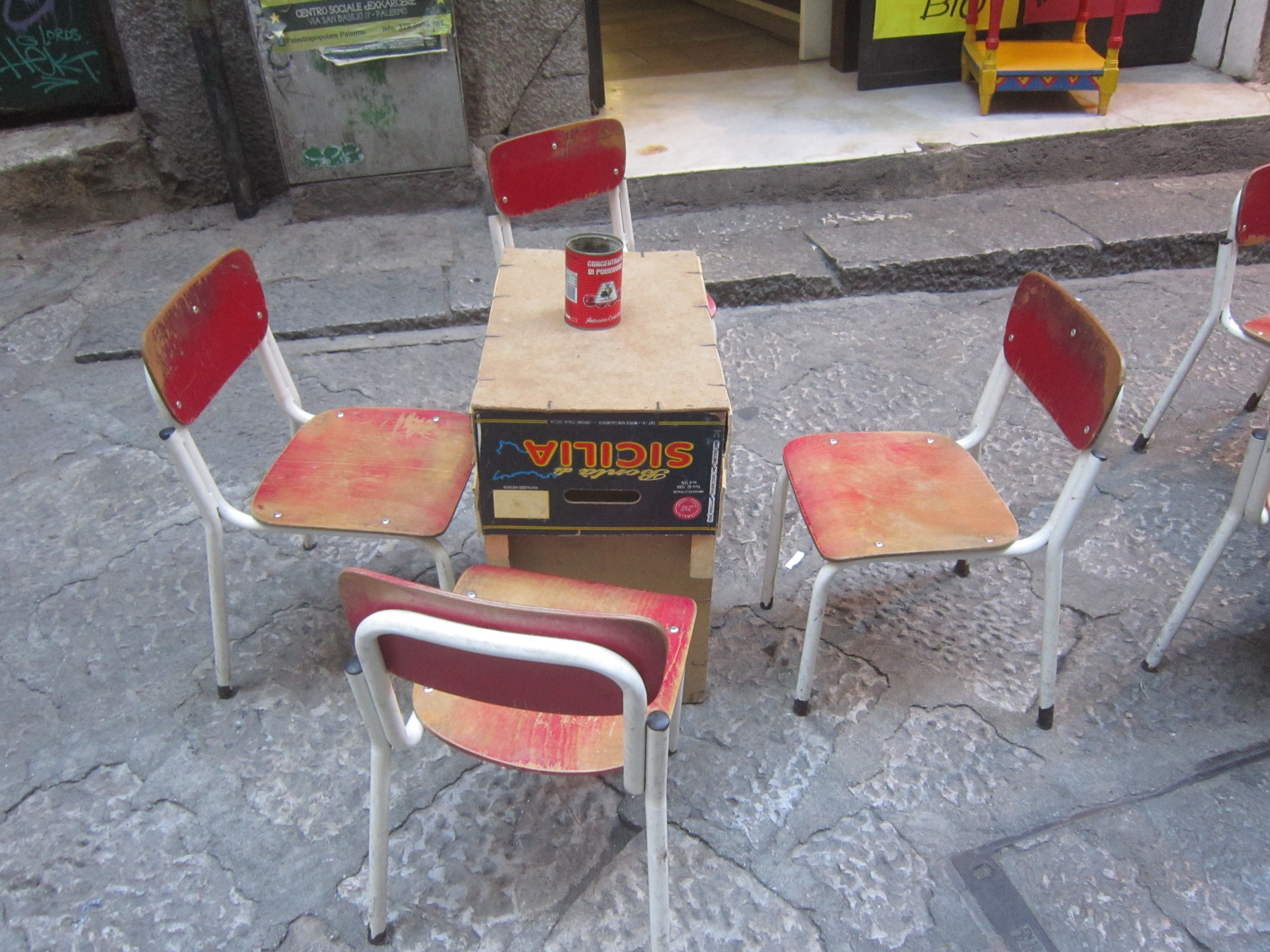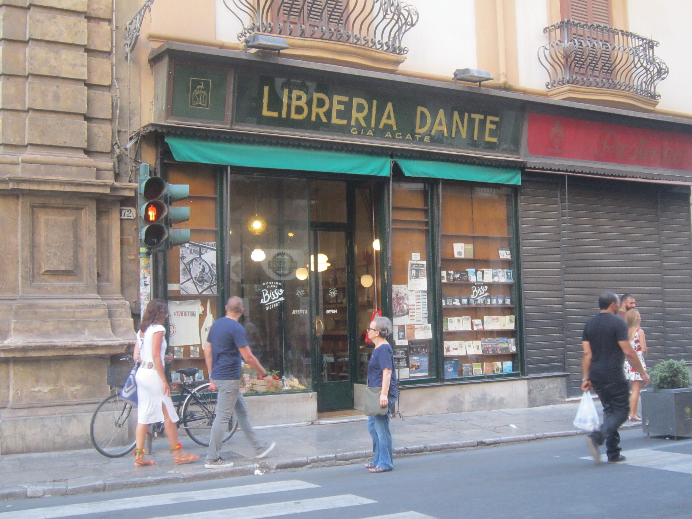 Optiamo subito per quella che avevamo letto essere una libreria su una guida di qualche anno fa e che scopriamo invece essere diventata un locale: Bisso Bistrot. Scendendo da Via Vittorio ci infiliamo in questo locale di cui resta lo scheletro librario, riadattato a posto cool dove assaggiare involtini di pesce spada o un crudo di pesce mentre tra i piedi occhieggiano romanzi Sellerio in bacheca. La gente è bella: ride rilassata davanti a piatti abbondanti, vestiti estivi leggeri (“siete pronte? – ci aveva avvisato Alice poco fa – arriva il caldo, quello nostro. In quel caso lasciate stare tutto e andate al mare”), un accento, una prosodia nella parlata che è una promessa di sole. Sono le dieci di sera passate: abituarci all’ora locale appena arrivate non è stato affatto un problema, anzi, con tutte le cose che abbiamo in programma di fare e vedere sarà meglio che i ristoratori non ci guardino male se decidiamo di rifocillarci ben dopo i classici mezzogiorno e le otto di sera.