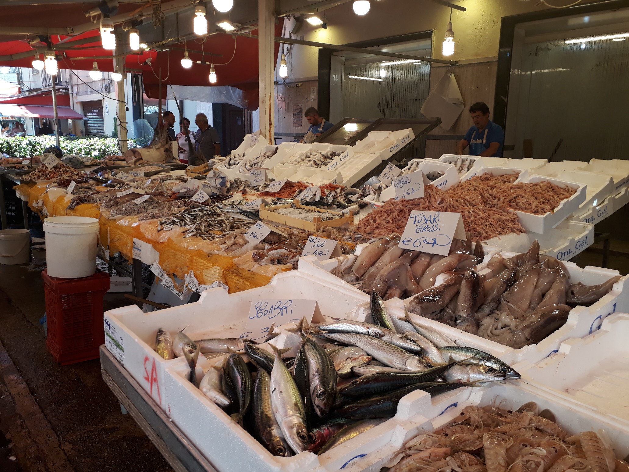Abbiamo presto capito che, oltre a quelli della Vucciria, il nostro primo amore, i vicoli di Palermo sono tutti densi di storie e bellezze, di Sicilia e di tutte quelle contraddizioni di cui sopra. Ci sono stata poco, ma credo di aver colto che, senza quel contrasto stridente di meraviglia e incuria, la città non sarebbe la stessa, né saprebbe parlare di sé con quella forza sorprendente che ci ha stregate prima ancora che scoprissimo le meraviglie della Palermo turistica, quella dei monumenti. I vicoli, i mercati – Ballarò, il Campo, la Vucciria -, i negozi, la gente, i banchi e i colori, i profumi, la vita stessa. Lo sfincione con la ricotta da assaggiare a Ballarò, 12enni in motorino, banchi del pesce che solo a pensarci viene fame, pomodori cuori di bue a prezzo stracciato rispetto a quel che sono abituata a vedere al nord, le mandorle, i meloni gialli, turisti americani e dialetto incomprensibile, terrazzi che crollano e grida di protesta sui muri, effimeri segni che dicono di una città viva più che mai.