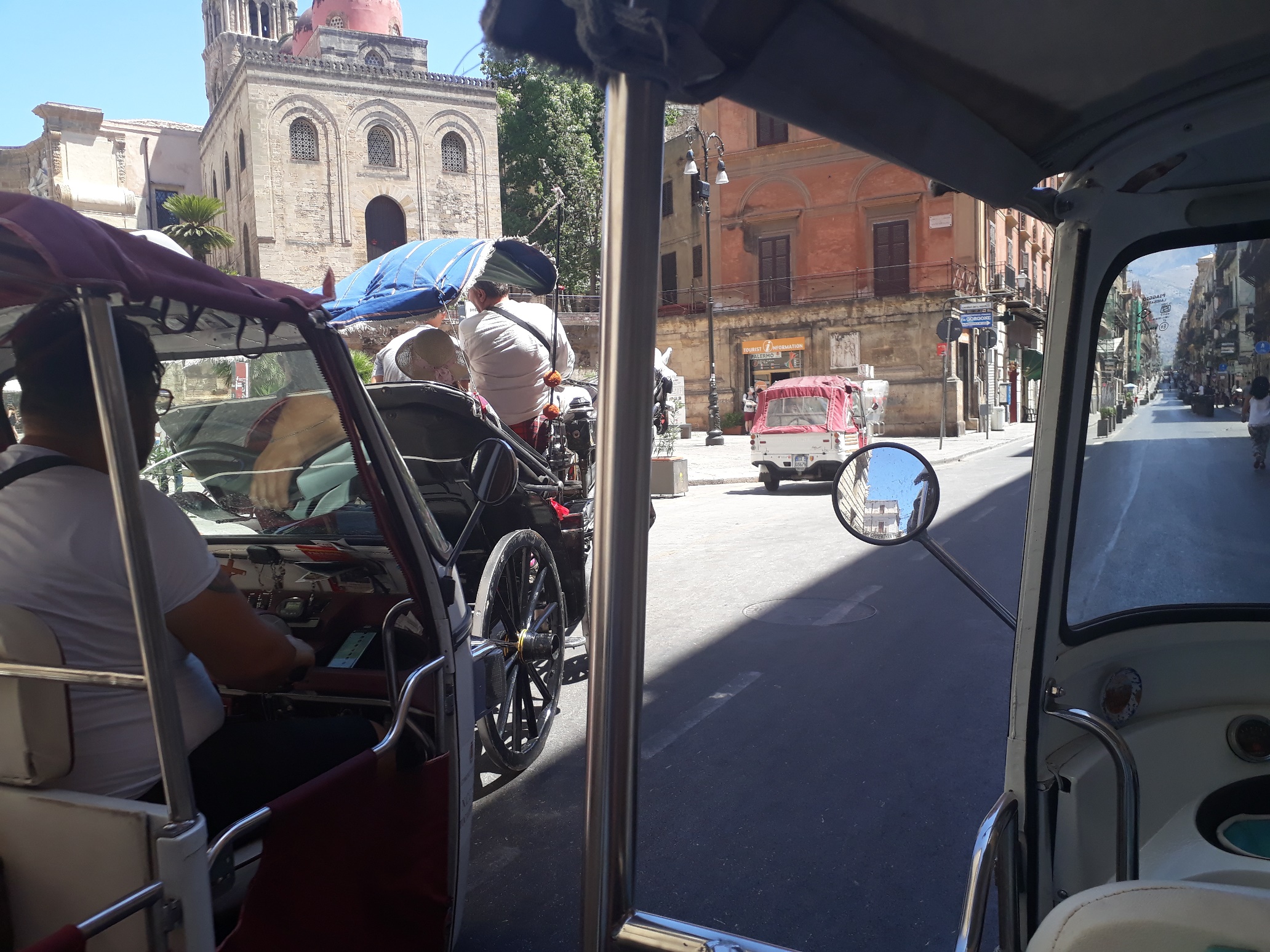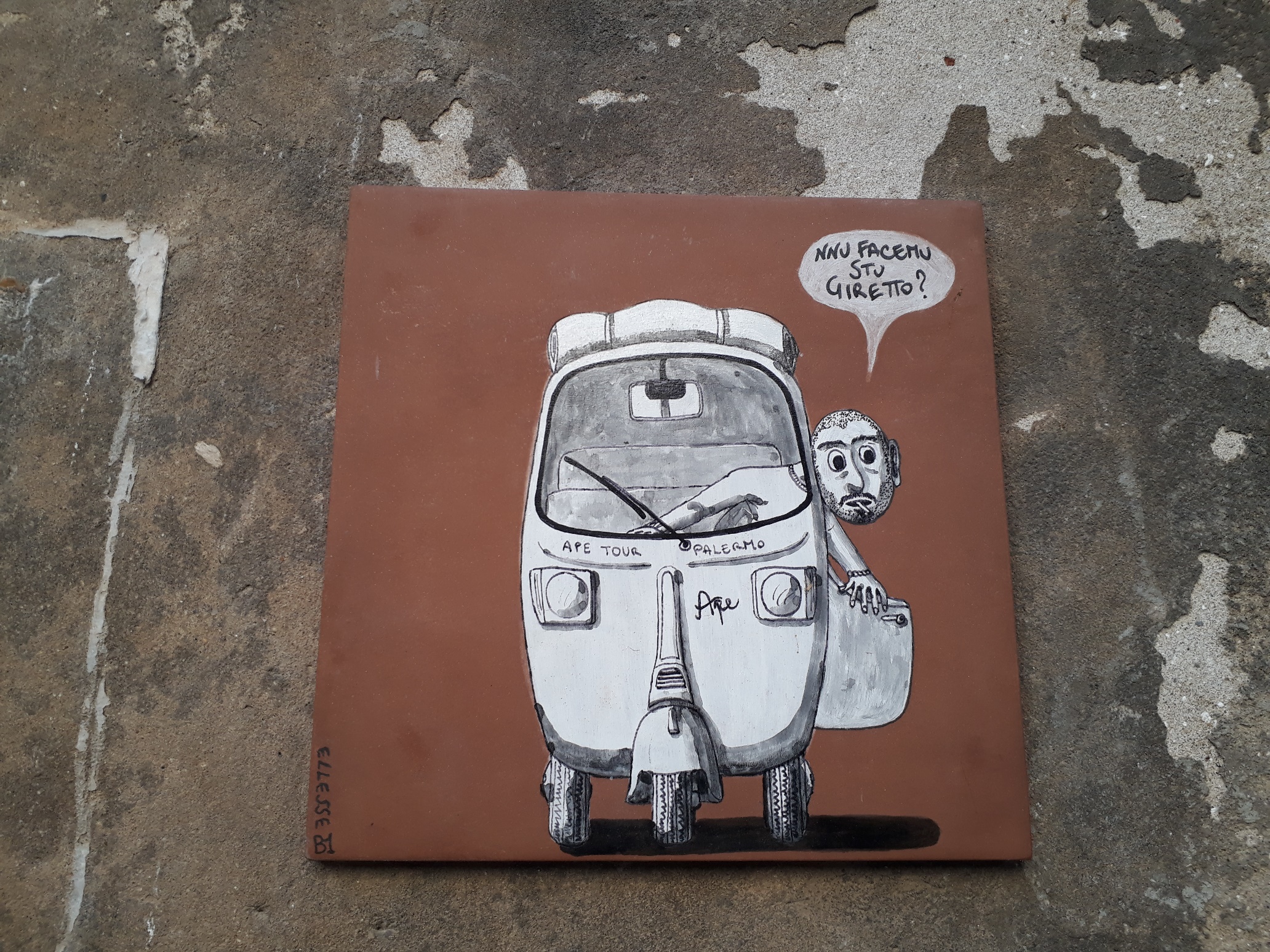 Curve rock’n roll, partenze in salita da asma, e poi strombazzate agli amici, saluti in dialetto, scorrazzando per il centro di Palermo, da Ballarò a Piazza Marina, con il suo gigantesco ficus monumentale. Tony ci ha finalmente chiarito alcuni dettagli sulla Kalsa, il quartiere antico, dove vivevano Falcone e Borsellino, e dove tutt’ora c’è la farmacia della famiglia Borsellino, che ospita un’associazione impegnata a cercare di togliere i picciriddri dalla strada. La fisionomia del quartiere prendeva forma, insieme alla consapevolezza di una Palermo che forse gli americani a bordo delle Ape turistiche non colgono fino in fondo. So che noi invece abbiamo colto, ed è stato importante vedere tanto, vedere tutto, patrimoni Unesco e patrimoni urbani, monumenti e decadenze narrate dalla voce di Tony e rilette alla luce di quello che abbiamo letto, visto e sentito da amici siciliani sulla città. È un modo per volere ancora più bene a Palermo, una promessa di ritorno, la speranza accesa di vedere quello che “sarà un posto bellissimo”.
