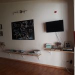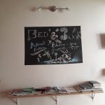 Ma dicevamo: la gradevolezza del luogo prosegue e aumenta all’interno, nell’ingresso comune con ampia vetrata-porta sul giardino che ospita la cucina, il tavolo per la colazione, una lavagna e le prime collezioni di libri, che si alternano tra coralli Einaudi sul banco di cucina, e una pila verticale proprio all’entrata, infarcita di Sur, Iperborea, Minimux fax e altre meraviglie. Super è poi la mensola del televisore (ah, dettaglio importantissimo: wifi disponibile!), che ospita una rassegna ampia e ricca di riviste culturali, tra cui Pagina99 e copie del New Yorker. Inutile dire che mentre Alice e Marco davano istruzioni tecniche e raccontavano la città, io avevo già la maggior parte dei neuroni persi dietro a queste chicche. C’era Roland Barthes, c’erano i librini di Duepunti edizioni, e ancora un sacco di riviste indipendenti tra cui Effe, e il libro di Marco, che insieme a Mauro Filippi e Luisa Tuttolomondo è autore di Street art in Sicilia (Dario Flaccovio Editore), una guida interessante e dalla grafica accattivante dedicata al fenomeno della street art in regione.