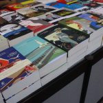 Venerdì era il primo giorno, per di più giorno lavorativo, eppure le bancarelle delle case editrici nel pomeriggio sono andate affollandosi. C’erano delle ottime case editrici, tantissime delle quali seguo ormai da anni: 66thAnd2nd, E/O, Nottetempo, Sellerio, Nutrimenti (con la collana “mare” che secondo me è stupenda e a Genova lo è ancora di più), Miraggi, NN, Exòrma, Fazi, L’orma, Sur, Minimum Fax, Iperborea, e tanti altri che ora a memoria non ricordo. Editori che fanno cose belle, da cui arriva una fetta consistente delle mie letture, dei miei viaggi, delle mie conoscenze. Perché andare alle fiere dell’editoria è anche, per chi un po’ ci bazzica per lavoro e ha a che fare con i libri, incontrare persone. Per esempio il mitico social media manager di NN editore (qui, a proposito, potete leggere la recensione dell’ultimo Kent Haruf), oppure l’ufficio stampa di Exòrma, che ho sentito tante volte via mail e dal vivo è ancora più gentile e simpatica, e se poi mentre sei con lei arriva Marino Magliani, autore Exòrma, è festa e sorrisi (anche qui trovate la recensione dell’ultimo libro di Magliani che ho scritto per LuciaLibri). E poi ancora Miraggi, che è torinese e con cui di solito ho contatti invisibili via mail, e Voland, con cui chiacchierare dei bei libri pubblicati da loro, letti e non dimenticati (anche in questo caso, uno dei recenti lo trovate qui). Ah, e poi Fazi, davanti a cui inchiodo e contemplo la bellezza di tutti quanti i volumi della saga dei Cazalet e confesso di essere un po’ indietro, ho letto solo il primo, ma tranquilli eh, che ce li ho tutti! (Che poi, avete notato come tre delle saghe/-ilogie più lette degli ultimi tempi siano di editori indipententi? In testa Elena Ferrante di E/O, e poi i Cazalet della Fazi e la Trilogia della pianura di Haruf, editore NN).