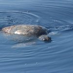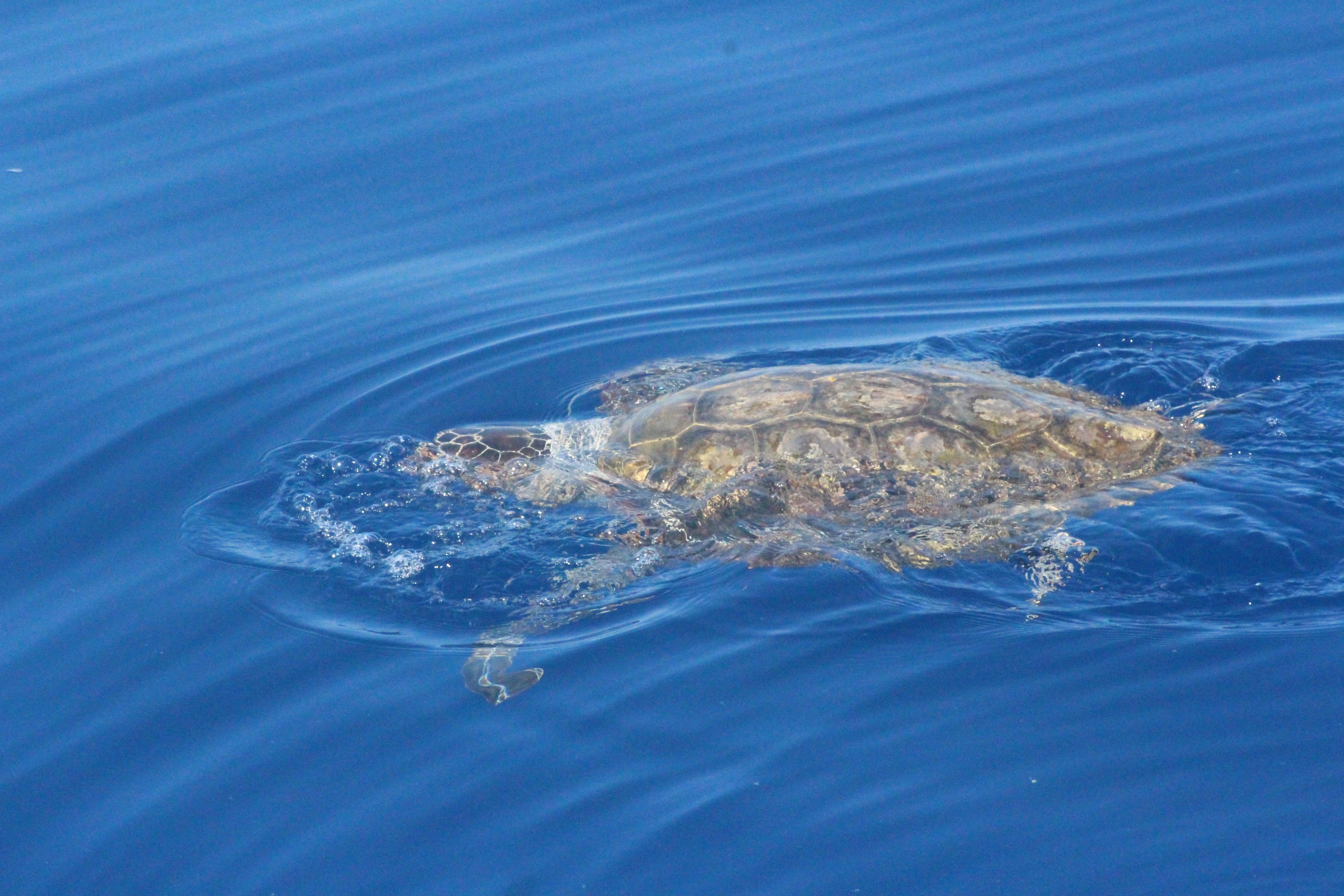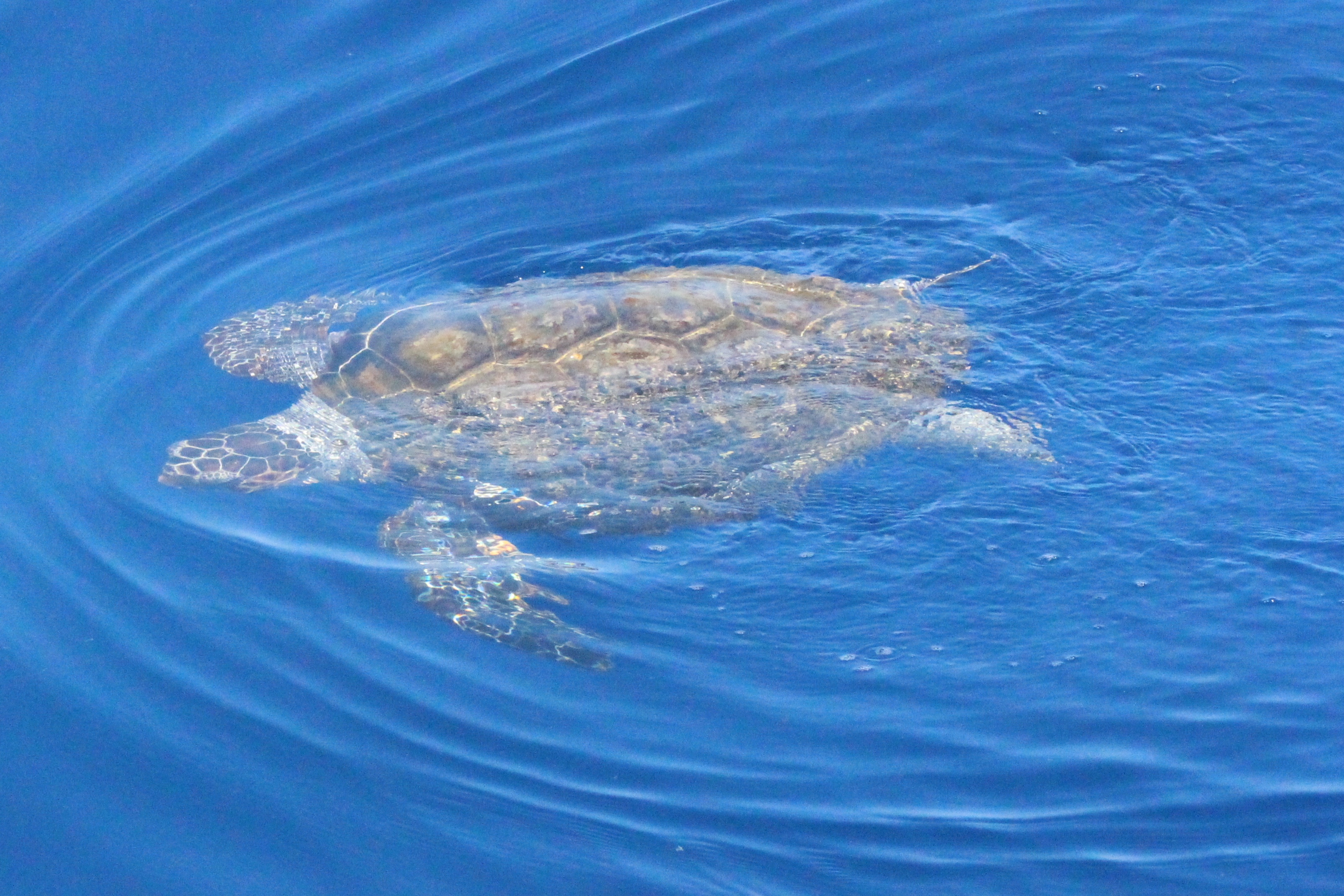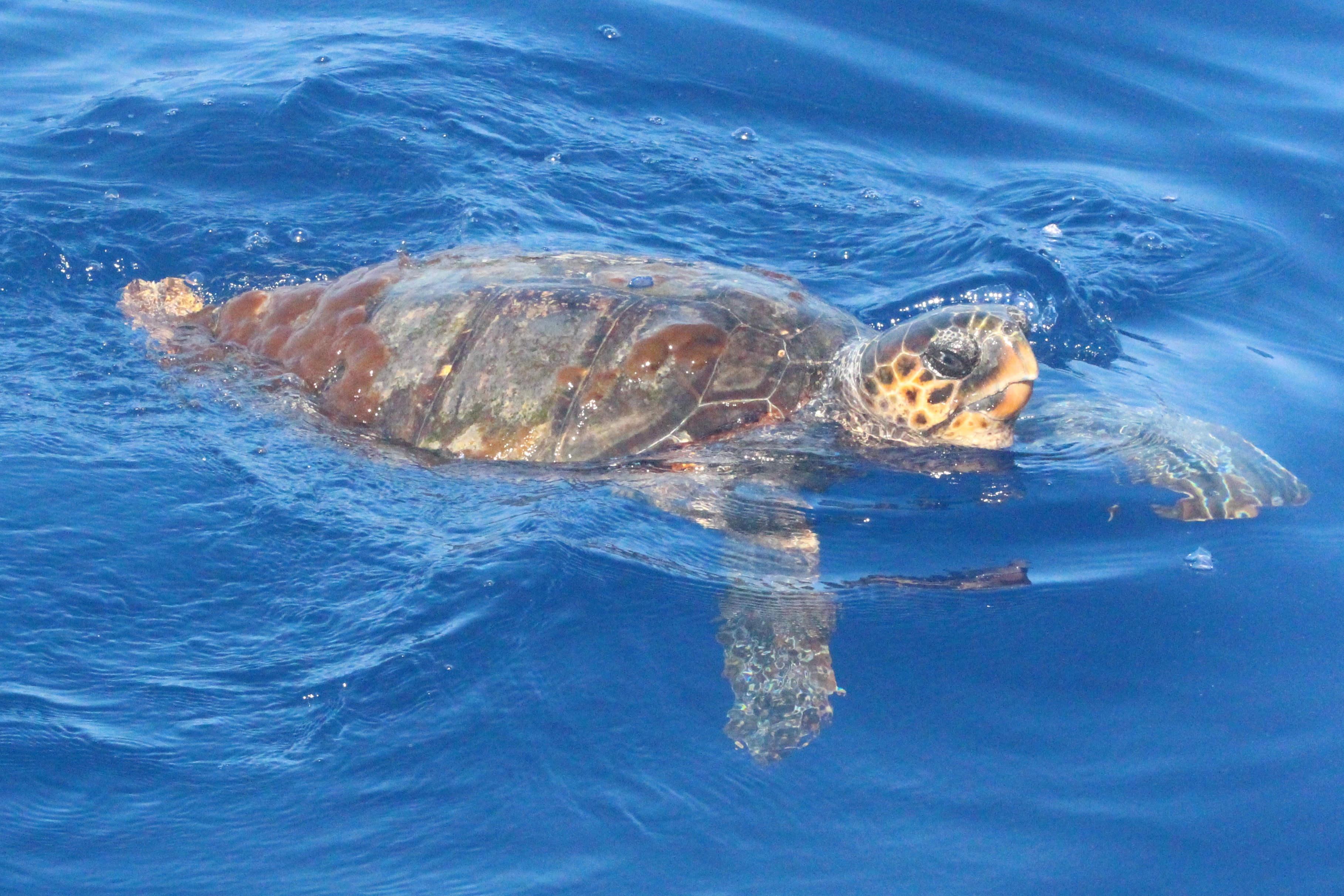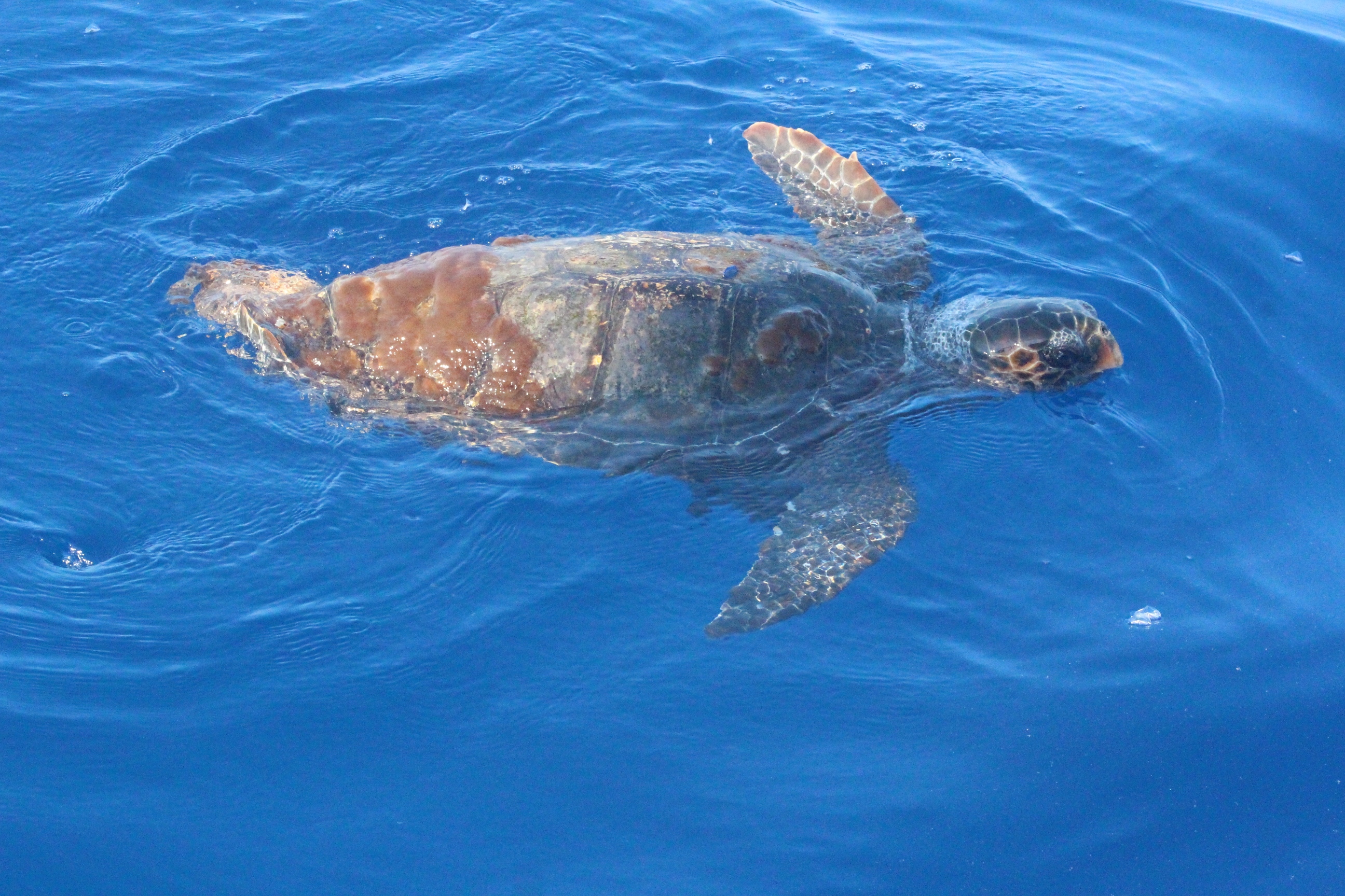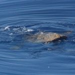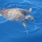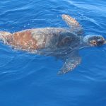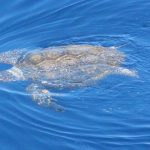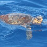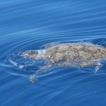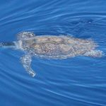 Sabato scorso l’acqua era di un blu eccezionale: limpida, i corpi sinuosi delle stenelle sott’acqua che si intravedevano nettamente. Era un’acqua già estiva, solcata di tanto in tanto di velelle e altri piccoli gasteropodi. È stato naturale scoprire, a un certo punto, nella bonaccia piatta in cui navigavamo, che ci sono animali ghiotti di queste creature e dunque, in quelle condizioni, facili da incontrare: le tartarughe caretta caretta. Ne abbiamo viste tre, e io non le avevo mai viste in ambiente naturale se non anni fa da un traghetto Tirrenia entrando nel porto di Cagliari. Ora, sulle tartarughe permettetemi una piccola divagazione. La scorsa estate a Favignana ho visitato il centro di Primo Soccorso dell’Area Marina Protetta delle Egadi nel quale sono curate proprio loro, le tartarughe. È stata un’esperienza che mi ha commossa: questi esseri giganti, pesanti e indifesi nuotavano nelle loro vascone in cerca del mare dopo essere state recuperate, curate e salvate da minacce come ami o plastiche. Sono animali longevi, che raggiungono la maturità sessuale dopo i 20 anni, dunque pensate quanta meraviglia, e quale delitto ucciderli o far loro del male prima che possano riprodursi. E poi sono belle, belle e buffissime. Insomma, io mi sono innamorata delle tartarughe e un’amica, per i miei 30 anni, mi ha regalato l’adozione WWF a una tartaruga in Mediterraneo. Ovviamente non la conosco, non so dove nuoti né ho una foto: è una tartaruga caretta caretta, una specie protetta, e tanto mi basta. Allora ecco perché con ben tre caretta caretta avvistate in mare sabato scorso mi sono emozionata un sacco: e se una fosse stata la mia?! Al di là dello scherzo, resta il fatto che vederle in mare aperto è stato stupendo: sono simpatiche, il carapace da lontano sembra “una cosa” che galleggia, e poi quando ti avvicini scopri che spesso è cosparso di alghe, su uno c’era addirittura una velella spiaggiata. Mentre le prime due rugosissime signore si sono fatte fotografare in tutta la loro meraviglia, galleggiando pacifiche, la terza si è indispettita, e via, due colpi di pinna e giù, in verticale, è sparita nel blu. Questa cosa è talmente bella che smetto di raccontarvela: la impoverisco troppo, fatevi suggestionare da una manciata di parole e dalle foto!
